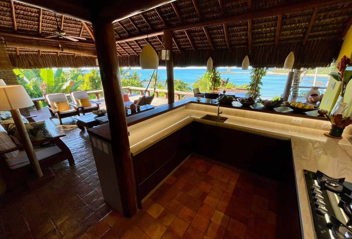 Vivi l'esperienza di una casa bahiana, situata nel punto migliore di Vila do Outeiro, di fronte alla riserva della scogliera del sentiero che scende verso la spiaggia con spettacolari viste sul mare. Il lusso sta nella semplicità, nei dettagli dell'architettura del sud di Bahia, dove i maestri fanno un uso intenso del legno nelle finestre, nelle colonne e nel sostegno del tetto sul pavimento della terrazza. Una casa con l'intimità dell'arredamento creato dalla sua proprietaria, per ricevere la sua famiglia, gli amici e ora i nostri ospiti.