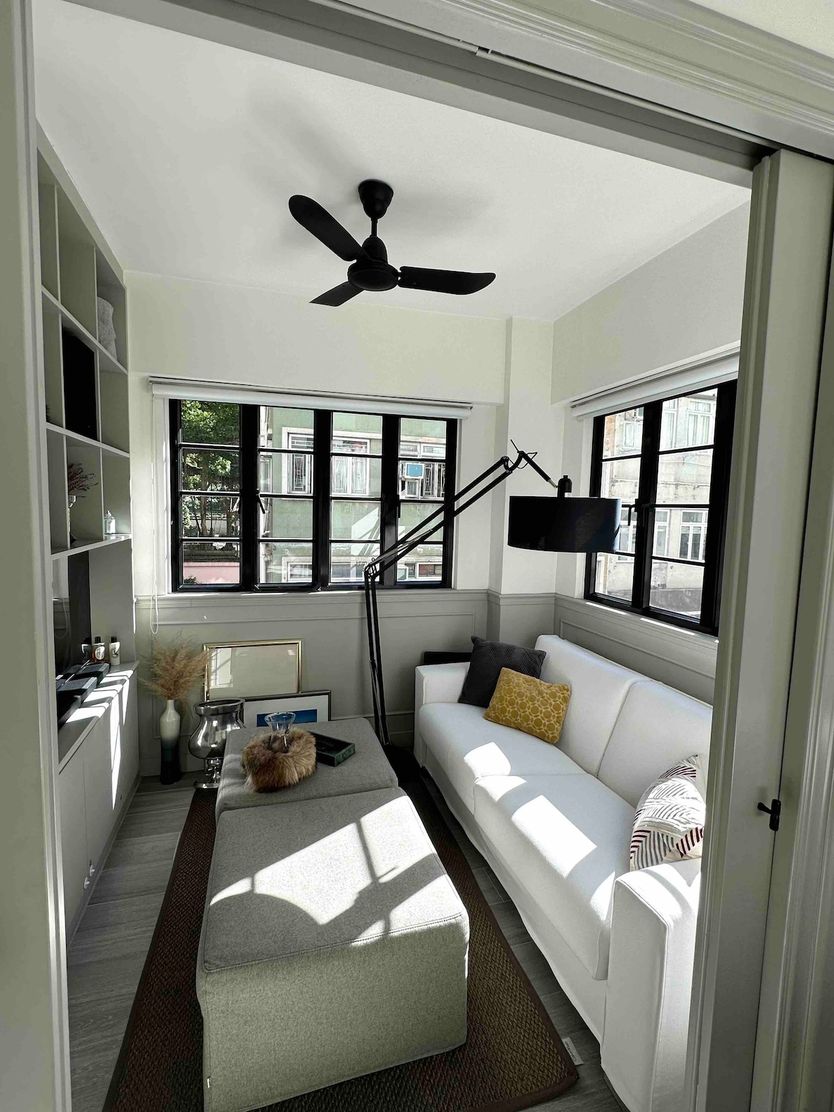 Goditi un'esperienza elegante in questo spazio commerciale in stile loft convertito in posizione centrale con letto king-size, luce naturale, spazio di lavoro, design moderno, wifi veloce e stabile, lavatrice/asciugatrice, attrezzature per esercizi, bicicletta pieghevole, ampio spazio per riporre oggetti, TV con Netflix e Playstation, Roomba e terrazza sul tetto. L'appartamento si trova al 5° piano e dista 1 minuto a piedi dalla stazione della metropolitana di Sheung Wan. La posizione è molto comoda. L'angolo cottura è essenziale, con piano cottura a induzione, tostapane, vaporiera, utensili e così via