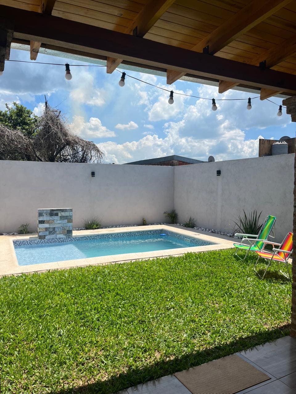Casa intera ideale per famiglie e gruppi fino a 6 persone, in un tranquillo quartiere residenziale a 5 isolati dal fiume Paraná. Tre camere da letto, spazi open space con ampie finestre che si affacciano sul giardino, garage coperto per due auto, portico con barbecue e patio verde. Aria condizionata (calda e fredda), completamente attrezzato e dotato di allarme di sicurezza.