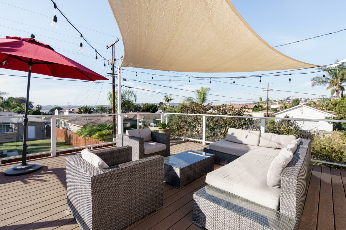 La vacanza dei tuoi sogni ti aspetta nell'oasi di lusso con 3 camere da letto a Point Loma. Ognuna delle eleganti camere da letto dispone di bagno privato e accesso alla splendida oasi del cortile, che è completa di piscina, spa, cucina all'aperto e area con focolare. Goditi la ristorazione all'aperto a bordo piscina o gli incantevoli giardini ricchi di piante grasse in tutta la proprietà. 8 posti letto. Lavatrice/asciugatrice, connessione wifi gratuita, Netflix e parcheggio sono inclusi. Sono inclusi anche lenzuola di qualità alberghiera e piumoni puliti. Non è consentito organizzare feste.