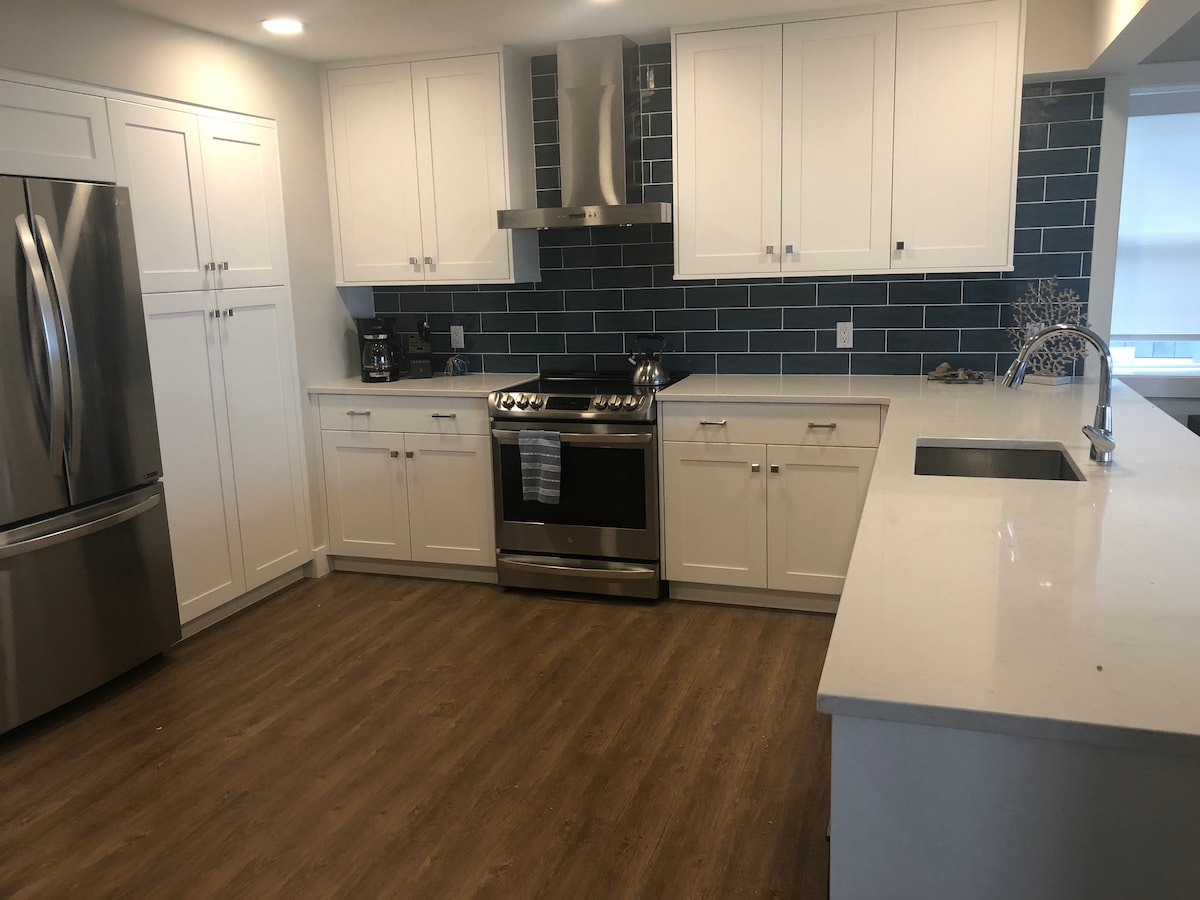 Questa accogliente e moderna suite con 1 camera da letto e 1 bagno nel seminterrato è luminosa e spaziosa e offre tutto il necessario per rendere il soggiorno il più confortevole possibile. TV da 70 pollici con canali via cavo e Netflix, ampio divano componibile con letto matrimoniale estraibile, wifi, aria condizionata centralizzata, lavanderia in loco, lenzuola di qualità con biancheria da letto extra. Tante grandi finestre che lasciano entrare molta luce naturale e uno spazio di lavoro dedicato con vista sul cortile sul retro. Parcheggio gratuito. Patio privato e possibilità di fumare all'aperto.