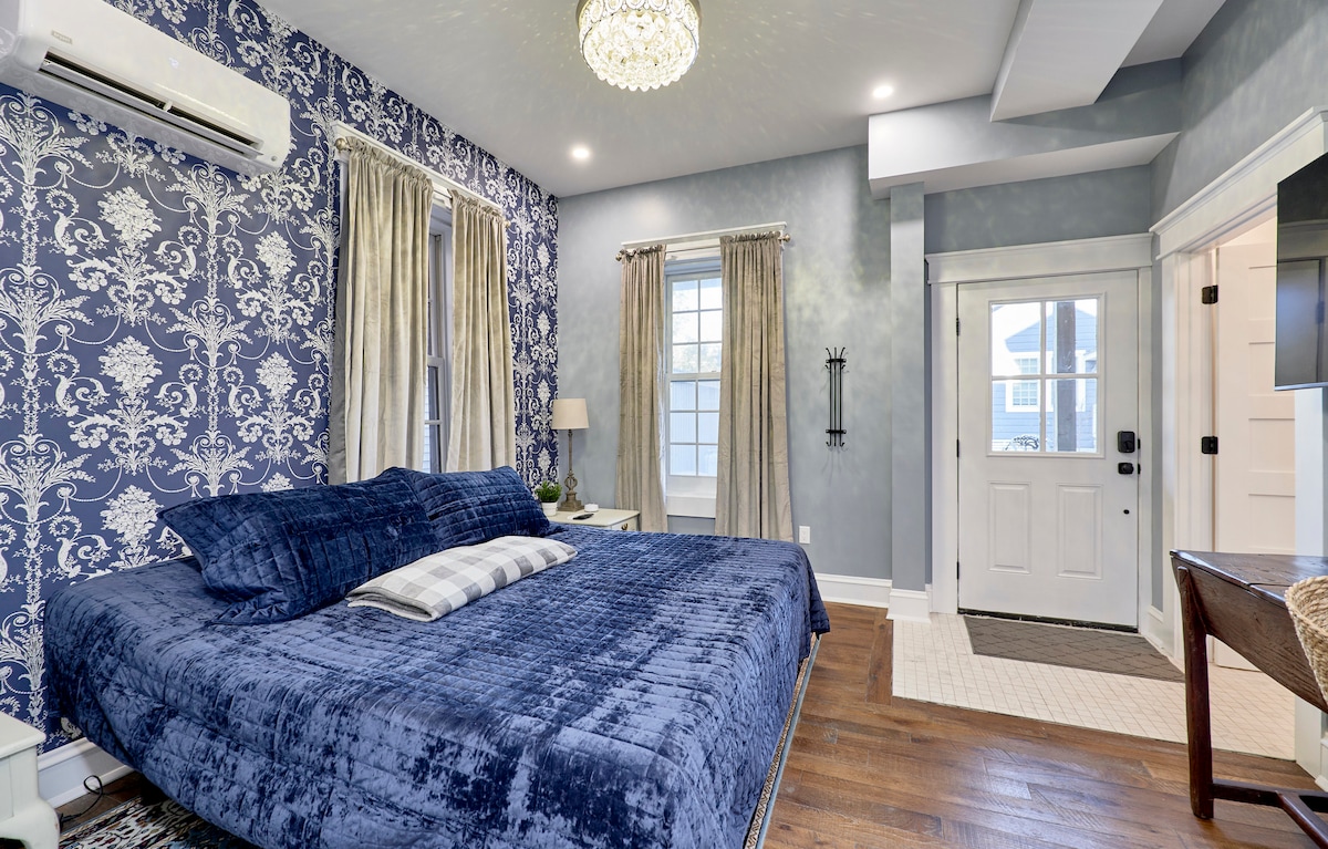 Una tavolozza di diverse tonalità di blu e argento ti accoglierà in questa unità di livello principale che si trova sul retro dell'edificio attraverso il cortile. Un po' più privato e lontano dalla strada principale, questa unità ti darà uno spazio per rilassarti e staccare la spina. Di fronte al cortile, puoi goderti la vista all'esterno.