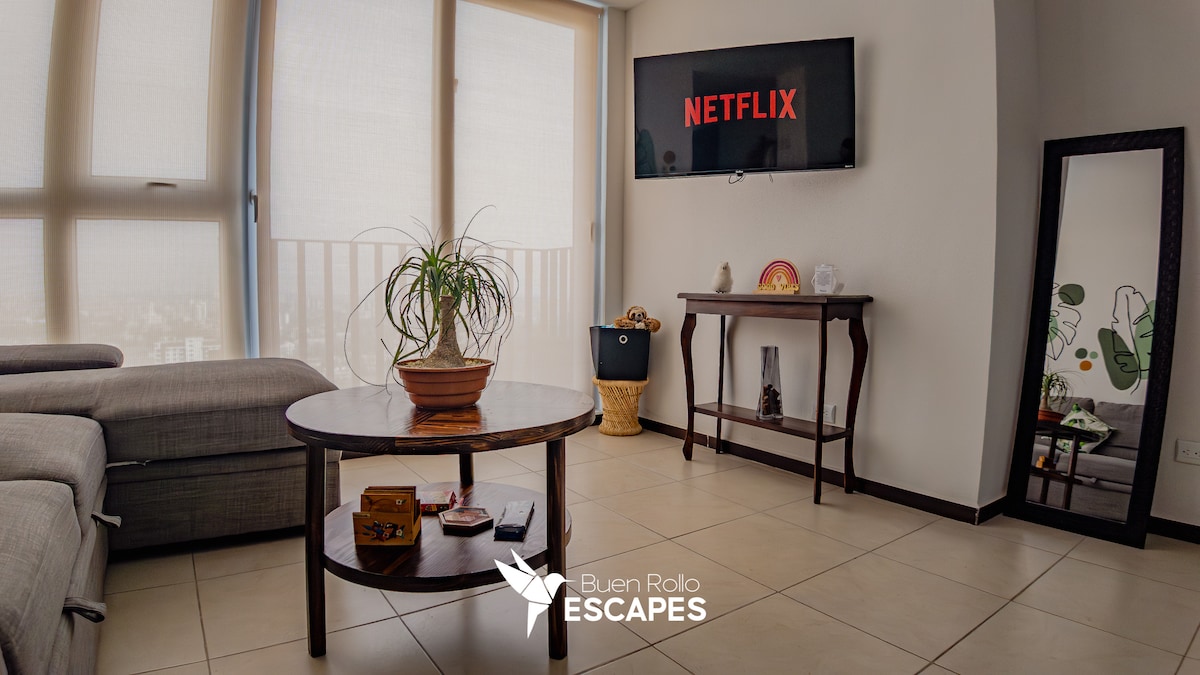 Feel the experience of staying in a brand new loft apartment in the beautiful country of Guatemala. Our apartment with modern, elegant touches that accompany an unparalleled view, provide calm and tranquility in one of the most exclusive areas of our country. You will have the opportunity to stay near shopping centers, restaurants, the hotel zone and a few minutes from the international airport.