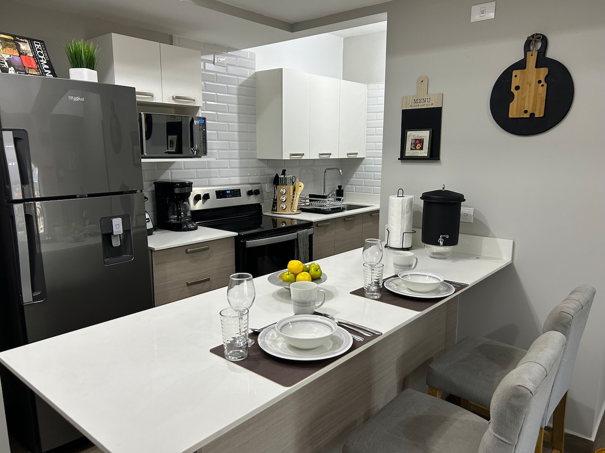 Appartamento di lusso premium, a soli 5 minuti dall'aeroporto. Situato in Avenida Las Américas, vicino a La Noria e ai migliori ristoranti. Design moderno, elegante e sicuro. Goditi l'aria condizionata, il pergolato privato, il giardino interno, 2 smart TV da 65 pollici, la cucina attrezzata, la lavatrice e l'asciugatrice, la biancheria da letto di alta qualità, l'oscuramento, il parcheggio e la sicurezza 24 ore su 24, 7 giorni su 7. Sofisticazione e comfort in ogni dettaglio. Ideale per un soggiorno indimenticabile. ✨💎