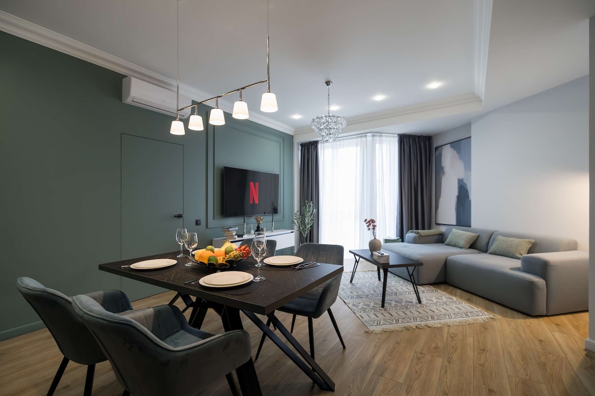 Questo appartamento è la base ideale per il tuo soggiorno a Chișinău, offrendoti uno spazio confortevole e invitante. Con un design fresco e moderno, ogni stanza è realizzata per farti sentire a casa, sia che tu sia qui per un weekend, un viaggio in famiglia o per lavoro. La disposizione è flessibile, per cui è facile rilassarsi o lavorare, e si trova a pochi passi dal meglio che la città ha da offrire. Che tu voglia rilassarti o esplorare, avrai tutto il necessario per un soggiorno senza pensieri.