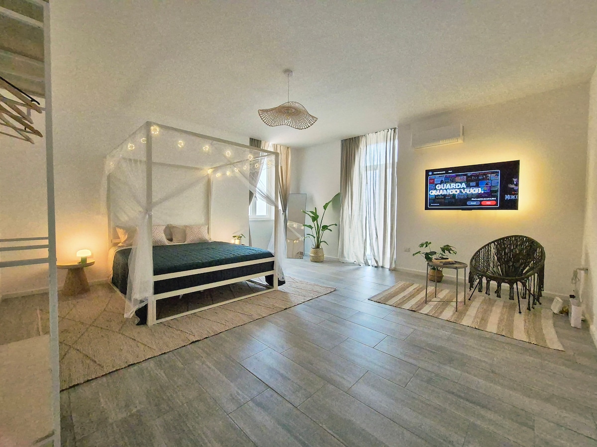 V1 Loft è una suite esclusiva nel cuore del borgo antico di Molfetta a due passi dal mare e dal Duomo. Ideale per coppie, professionisti e viaggiatori business in cerca di comfort, privacy, tranquillità e autonomia quotidiana in un ambiente boutique curato nei dettagli. Open space con letto matrimoniale, area living, zona lavoro, Wi-Fi veloce, aria condizionata caldo/freddo e bagno privato. La luce naturale del tetto in vetro rende lo spazio piacevole durante tutta la giornata.