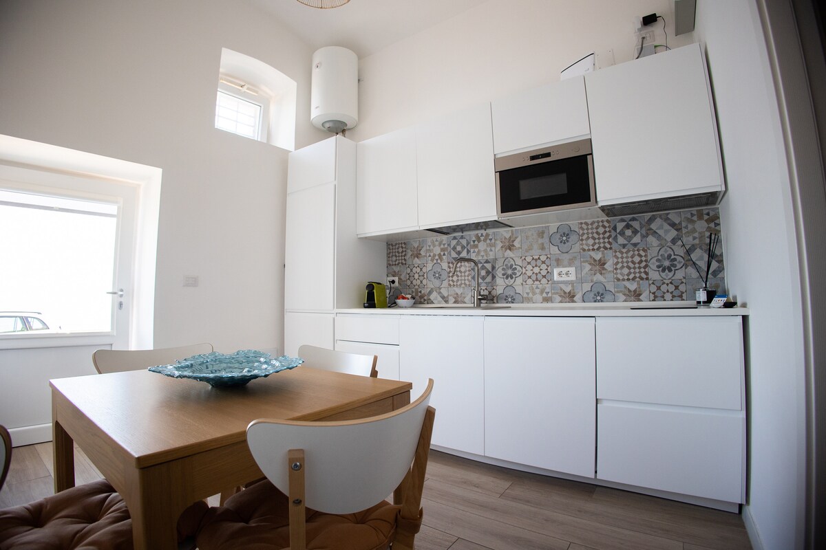 MURAGLIA Con ambienti ampi e arredati con gusto, l'alloggio dispone di una comoda zona living con un comodo divano letto, cucina open space dotata di elettrodomestici nuovi e una suite padronale con elegante bagno a vista dalla quale è possibile l'uscita sulla suggestiva muraglia. Possibilità di aggiungere letto da campeggio per bambini. L'alloggio è dotato di Wifi gratuito, smart tv, condizionatore caldo freddo e deposito per bagagli e biciclette.