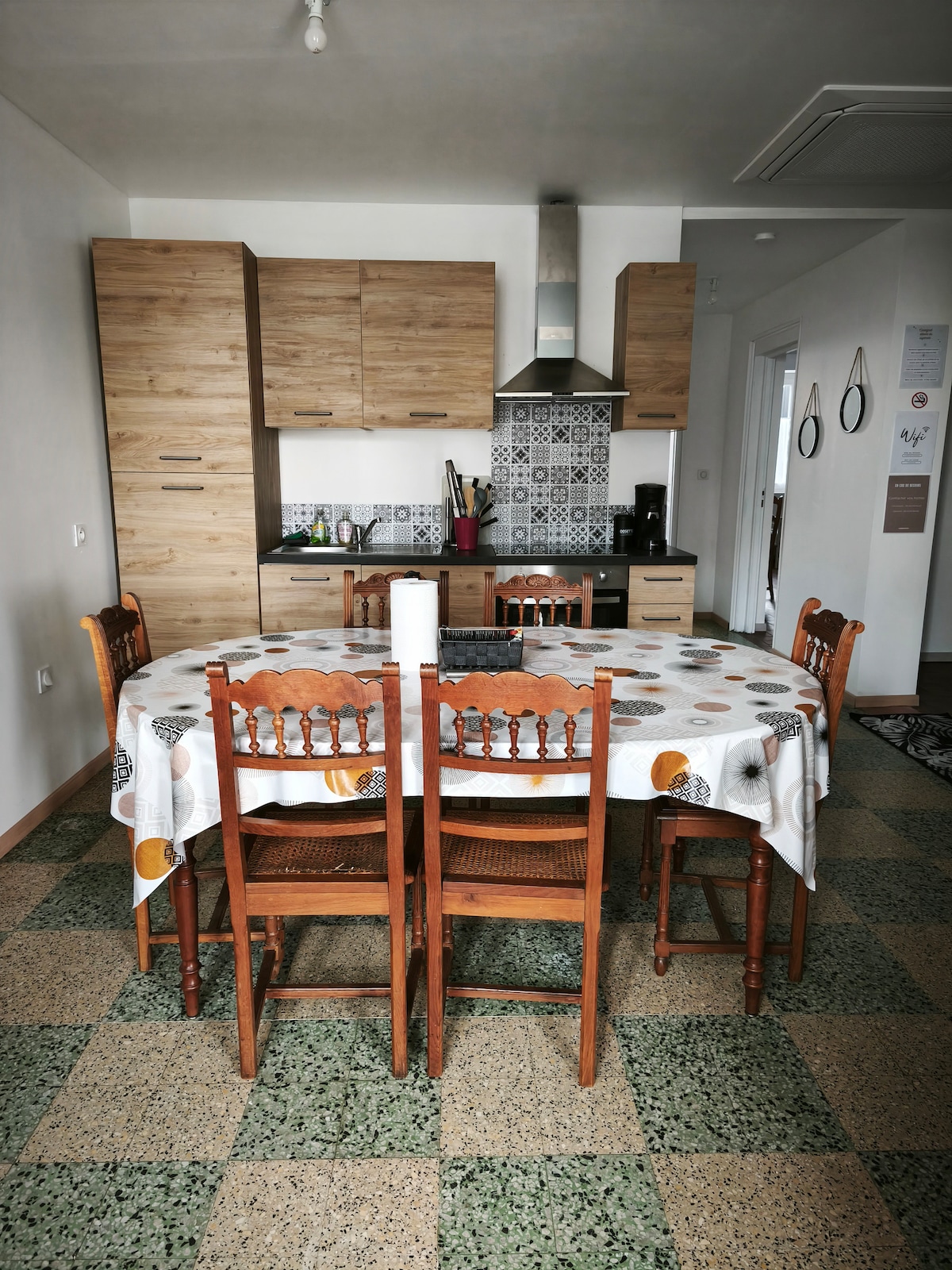 Casa di 105 m² con vasca idromassaggio sulla terrazza (23 m²), completamente ristrutturata, in zona tranquilla, che può ospitare 6 persone, e dotata di una vasca idromassaggio nella camera da letto principale. Idealmente situato vicino al Museo del costume (CNCS), vicino ai negozi, a pochi minuti a piedi dal centro della città e dal quartiere storico e a 25 km dal parco divertimenti Le Pal. Parcheggio facile e gratuito. Alloggio non fumatori. Accesso wifi gratuito.