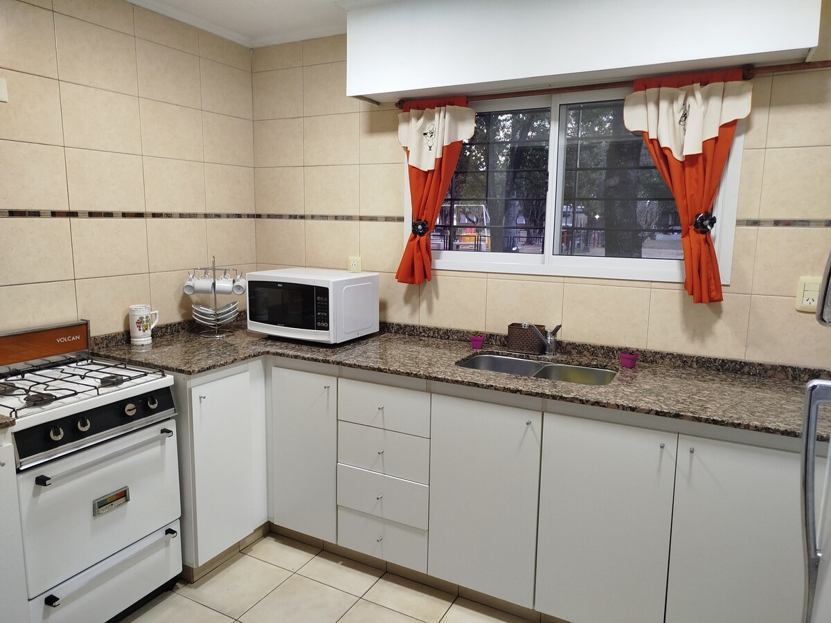 Casa situata in zona residenziale, in un vicolo cieco, di fronte a Plaza nel Centro Civico della città. Cafeterías, bar, farmacia, supermercati nelle immediate vicinanze. Di facile accesso dalla Ruta 178 (300 mt.) Colazione secca gratuita. Cucina, forno elettrico, forno a microonde, frigorifero, utensili e stoviglie, aria condizionata, riscaldamento e scaldabagno. Biancheria da letto, asciugamani e prodotti per l'igiene personale. Host flessibile per gli orari di check-in e check-out. Animali domestici non ammessi