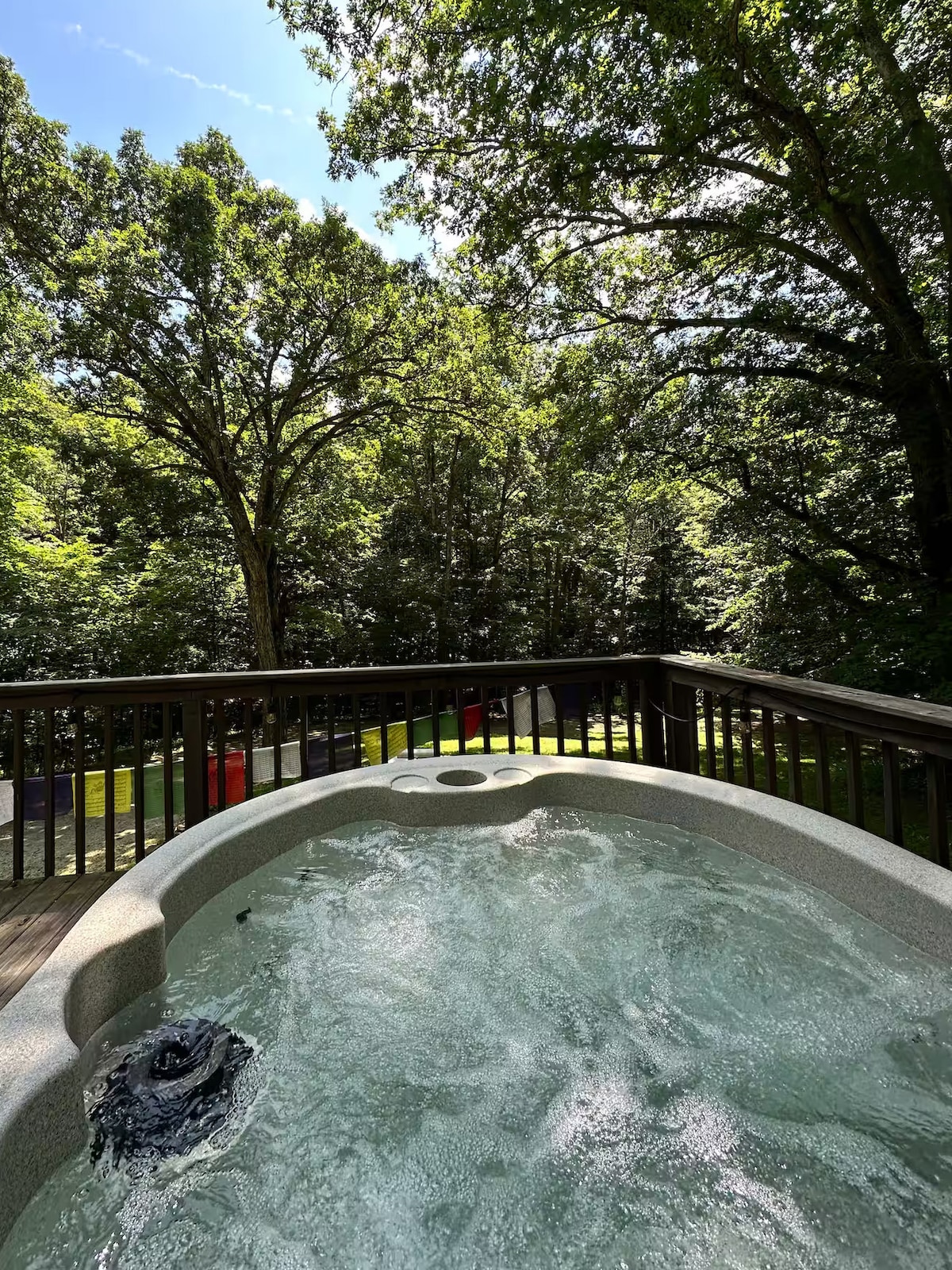 Private 11-acre woodland retreat with a hot tub, firepit, and trails—just 6 mi. from IU Bloomington and 5 mi. to Brown County. Tucked into a quiet U-shaped ridge, this cozy forest cottage feels secluded but not remote. Relax in the hot tub under the trees, enjoy a meal on the deck, or unwind by the firepit. Hike trails, explore the creek for geodes and fossils, or relax in a hammock by the waterfall. Weekdays are especially peaceful—ideal for a quiet work-from-nature escape with reliable WiFi.