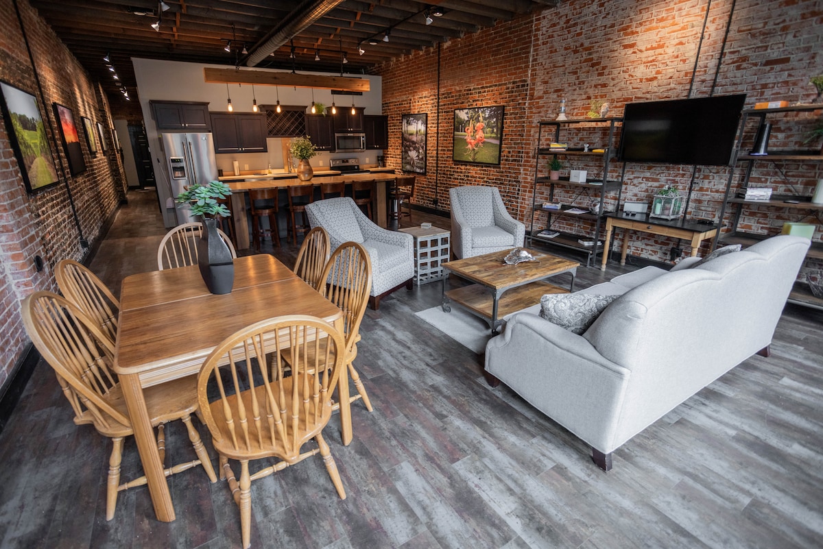 Enjoy this unique downtown loft. Close to bars, good eats, 2.6 miles from Harrahs Casino. Urban industrial decor, high ceilings, exposed brick. Full custom kitchen, pool table and comfortable furniture. Laundry located off master bedroom. Perfect for anything from a couples getaway to a little league team tourney weekend. That's right this space could sleep an entire team!