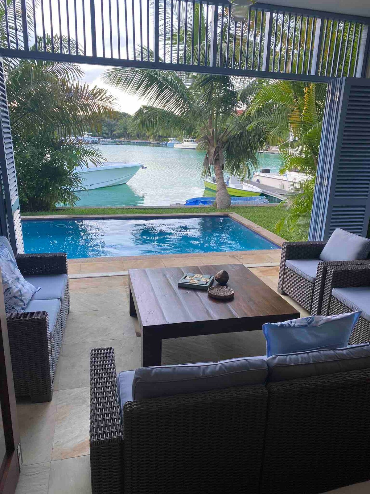 Luxury Self Catering 4 Bedroom Maison (all en suite) on the Eden Island Marina with Private Pool.(max 8 people) . L'unità è completamente attrezzata con tutti gli elettrodomestici,stoviglie, lenzuola e asciugamani, oltre a golf cart. Passeggia fino alle spiagge private o al centro commerciale Eden.