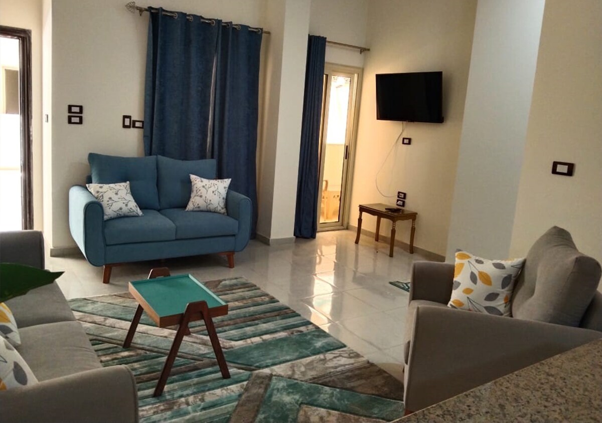 L'appartamento è in posizione ideale ad Alessandria, con 500 metri per raggiungere (5 minuti a piedi) spiaggia borevag, 0,5 km da Miami Beach, e 3 km dal Palazzo Montaza. Gli ospiti che soggiornano in questo appartamento hanno accesso a un balcone. L'appartamento dispone di 2 camere da letto, una TV a schermo piatto con canali satellitari, una cucina attrezzata con frigorifero e forno, un'area salotto e 1 bagno con doccia. La stazione ferroviaria di Sidi Gaber dista 7,5 km. L'aeroporto più vicino è quello internazionale di Borg el Arab.