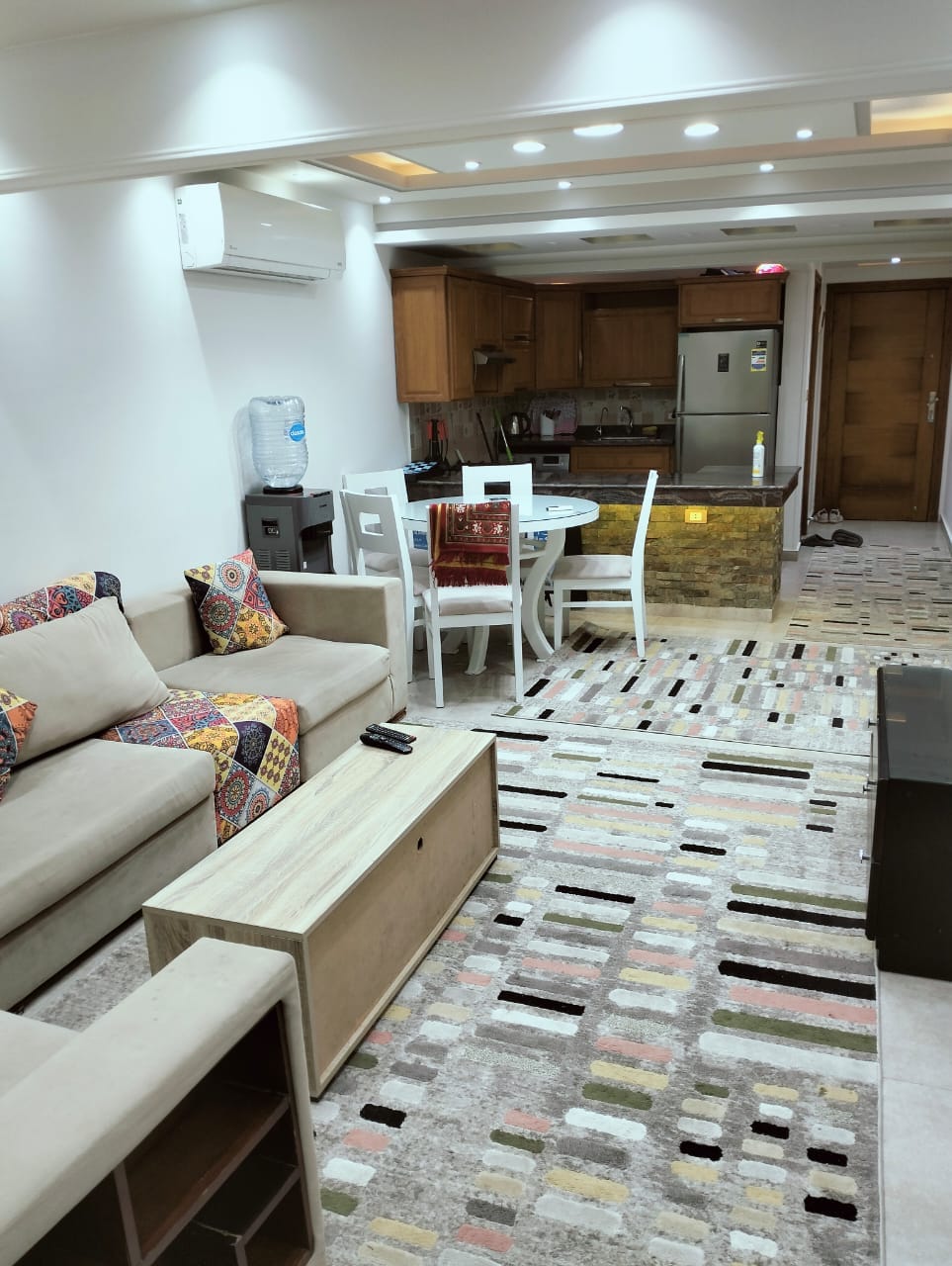 Un appartamento distinto sulla spiaggia di Alessandria nella zona di Montazah. È composto da tre camere da letto con 6 letti, due bagni, un ampio ingresso con sala da pranzo, salotto e soggiorno. Inoltre, la sala è ampia e offre una vista sul mare. E un ampio balcone con divano e sedie in vimini e perline classiche. L'appartamento è situato al nono piano, con una vista unica sulla spiaggia che non avrai mai visto prima.