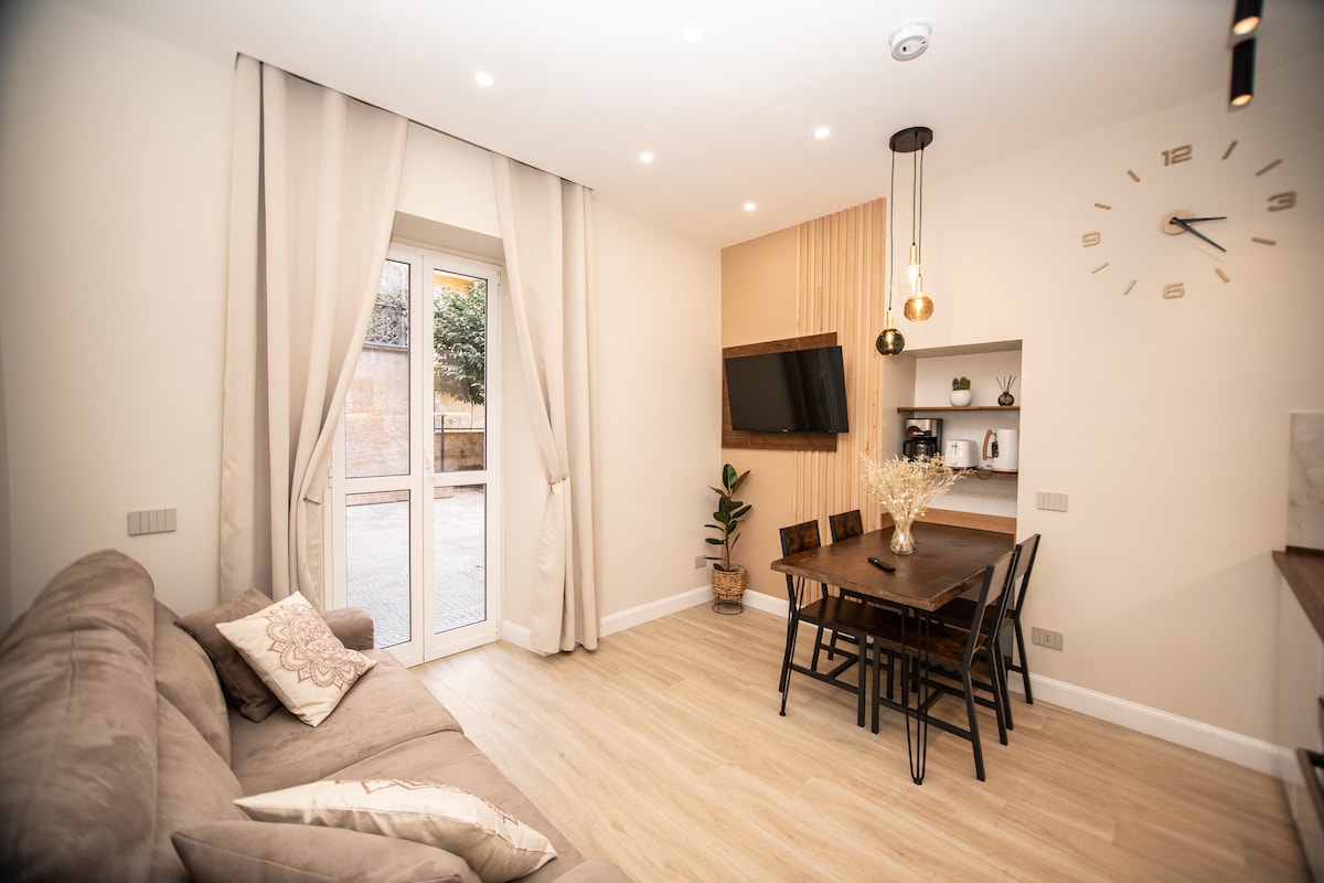 Nuovissimo appartamento indipendente per un massimo di quattro ospiti nell'autentico e vivace quartiere di San Lorenzo. L'appartamento si trova al piano terra di un edificio storico ed è completamente attrezzato per trascorrere un soggiorno confortevole a Roma. Dispone di una camera da letto con letto matrimoniale, un bagno in marmo nero, con lavatrice e asciugatrice, una bella e moderna cucina e una zona giorno con divano letto e Smart TV. Ristoranti, negozi e trasporti pubblici a pochi passi.