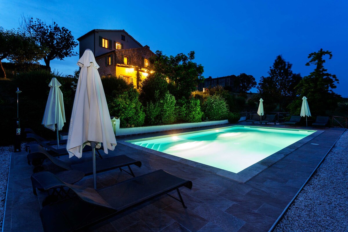 Casa in campagna con piscina e giardino-Il casale con piscina è situato in campagna con arredamento curato e completamente rinnovato, per una vacanza rilassante a 5 Km dalla Riserva Naturale dell'Abbazia di Fiastra, a 30 km dall'ingresso del Parco dei Monti Sibillini, a 30 km dal mare Adriatico e a 60 km dalla Riviera del Conero.