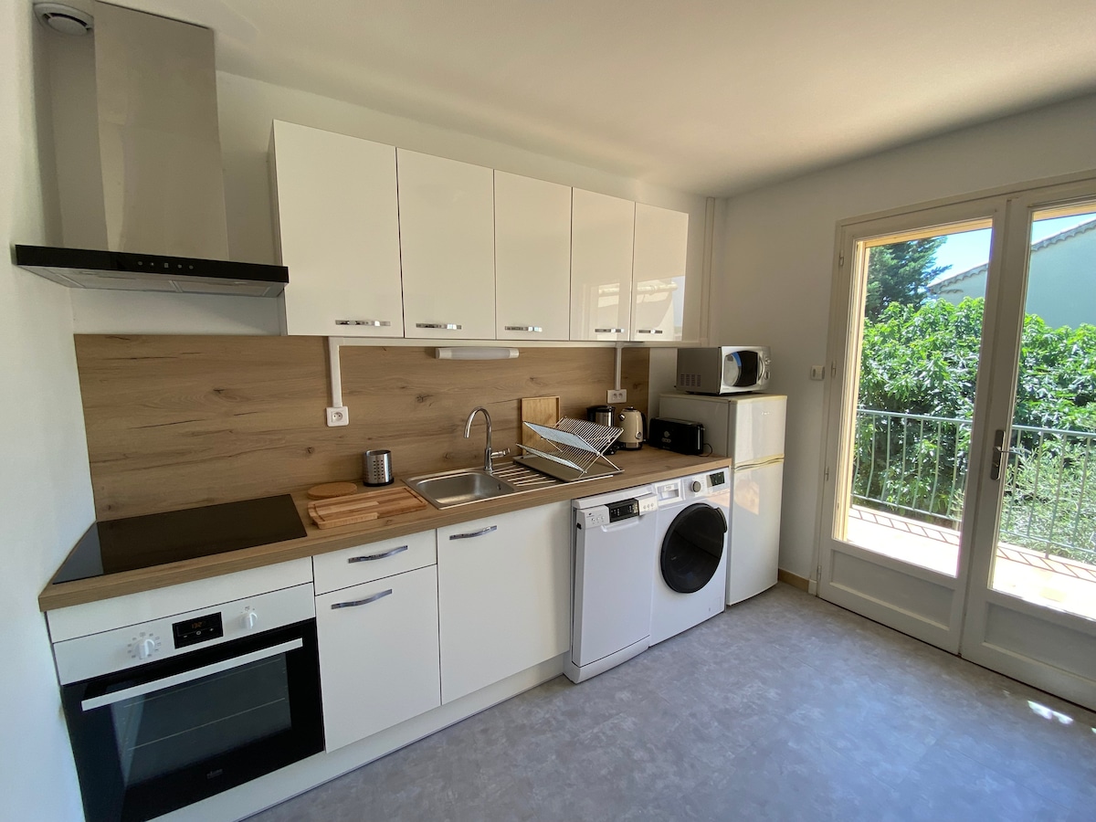Il nostro incantevole appartamento, appena ristrutturato e arredato da un architetto, è dotato di mobili nuovi e può ospitare 2 viaggiatori, o anche 4 con il suo divano letto. Confortevole ed elegante, si trova in una tranquilla strada senza sbocco a Montélimar e sarà interamente a tua disposizione. Al piano terra della casa, avrai accesso al giardino e alla piscina (non riscaldata). Questo accogliente appartamento è ideale per soggiorni turistici o di lavoro. Gli animali domestici sono i benvenuti!