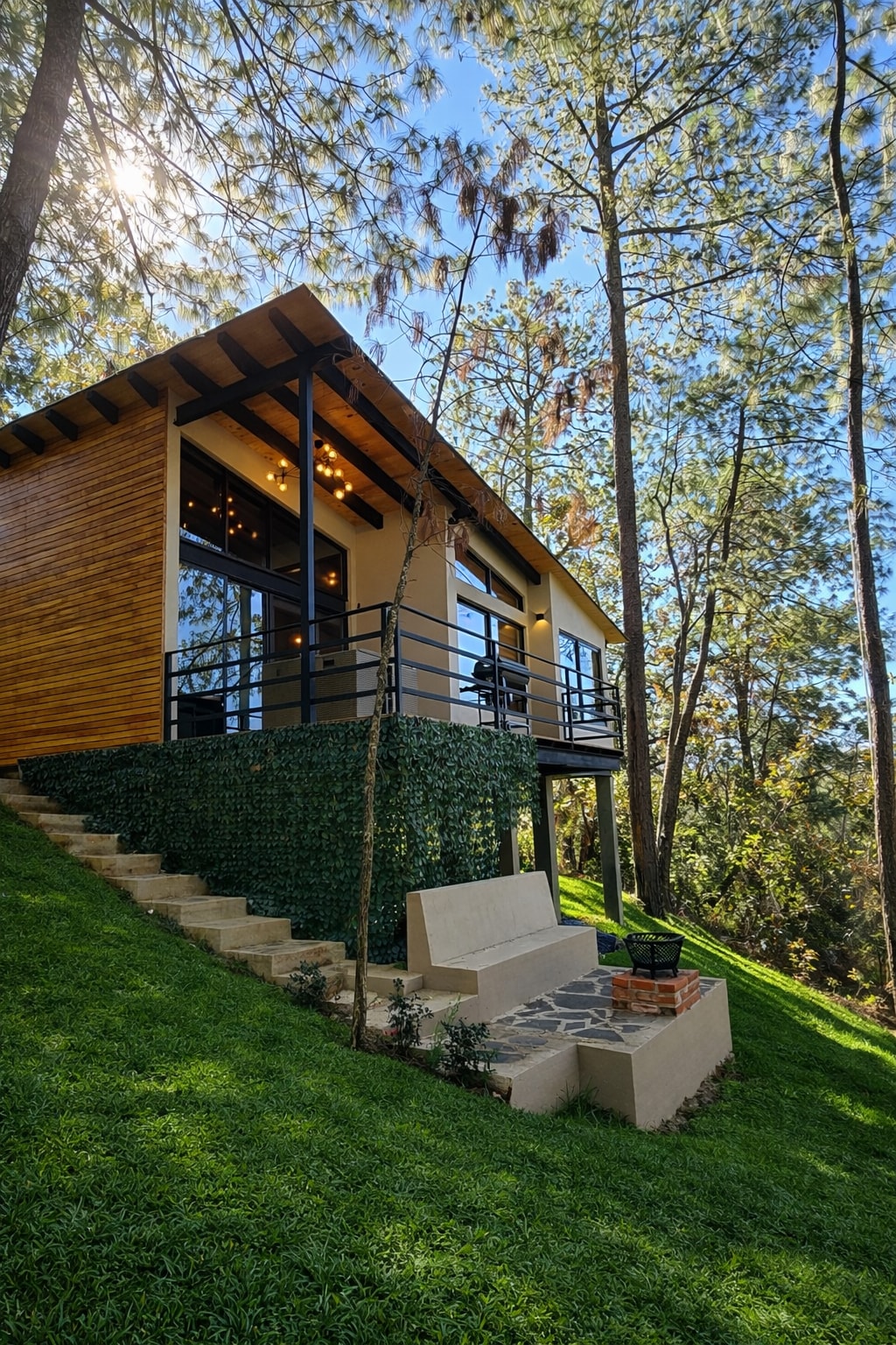 La Turemsa Cabin si trova nella magica città di Mazamitla, nello Jalisco. Si tratta di una bella suite loft completamente attrezzata nel bel mezzo della foresta, circondata da querce secolari, splendidi panorami e aria pura all'interno dell'esclusivo complesso Paso del Ciervo a Mazamitla Jalisco. Il suo design con ampie finestre e finiture di lusso renderà il vostro soggiorno un'esperienza indimenticabile per riconnettervi con la natura.