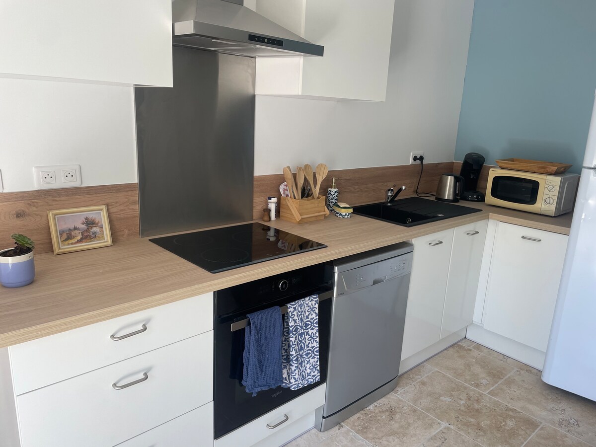 Benvenuti a Le Coquelicot, un tranquillo rifugio provenzale incastonato tra le antiche mura di Le Clos des Chartreux a Villeneuve-lès-Avignon, a pochi minuti da Avignone. Questo romantico e spazioso loft monolocale è pieno di anima e carattere. Con pareti in pietra a vista, mobili antichi, travi in legno e un'incantevole camera da letto a soppalco, Le Coquelicot unisce eleganza rustica e comfort moderno. Con due bagni completi (uno su ogni livello) e un divano letto molto comodo, questo è il posto perfetto per le famiglie.