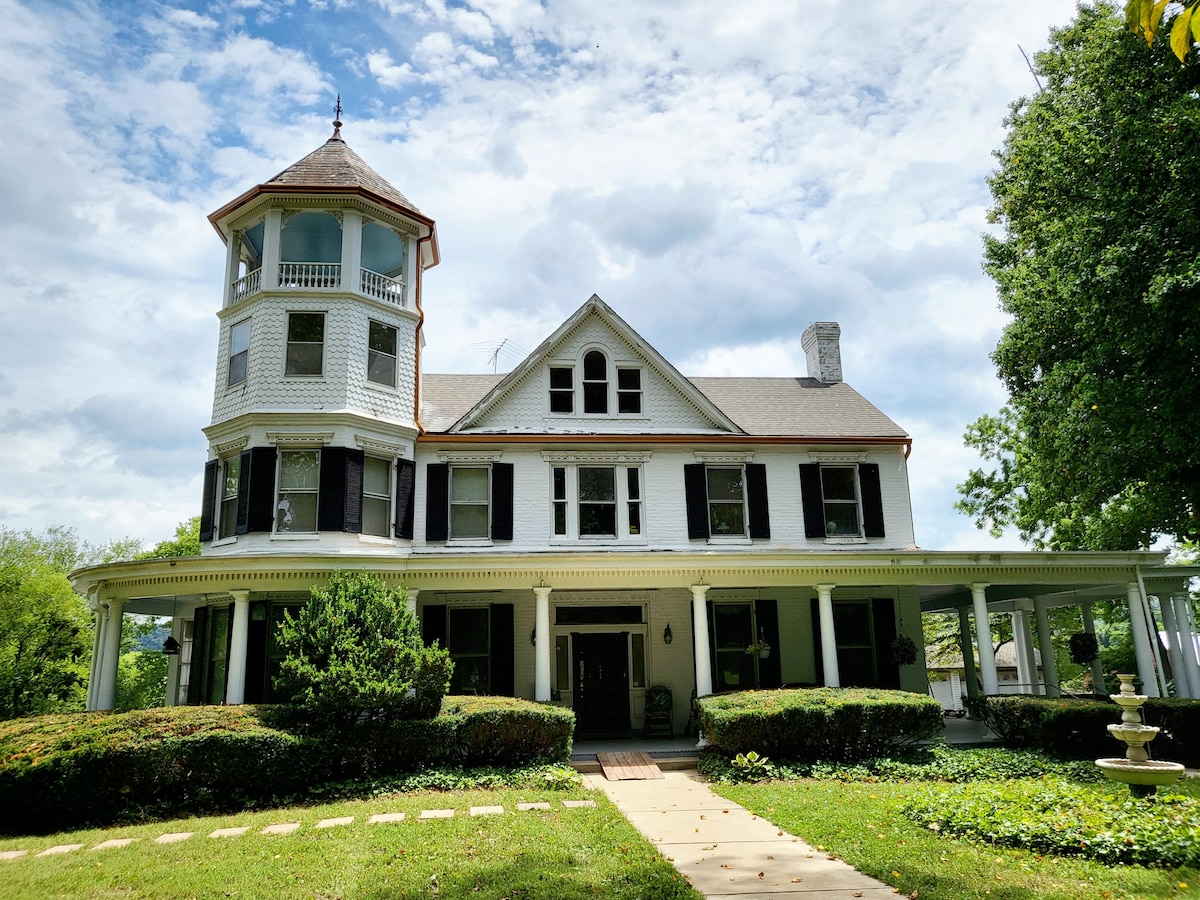 Benvenuto nella Tower Suite al 3° piano della Manor House! La suite dispone di un letto matrimoniale e di un comodo futon convertibile. Con una vista mozzafiato dalla terrazza di osservazione della torre, riscaldamento/aria condizionata moderni, una vasca da bagno vintage con piedini da 72" e un angolo cottura attrezzato, la Tower Suite è elegante e confortevole. Chi è ricettivo agli spiriti può sentire le voci sussurranti del passato che echeggiano attraverso questa tenuta della guerra civile! Ci sono limitazioni di altezza, quindi fai attenzione.