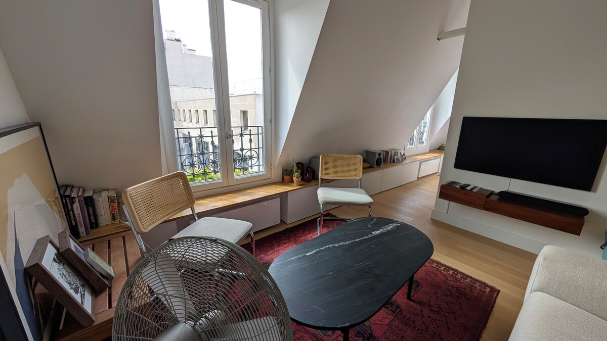 Questo monolocale arredato con gusto nello spirito di una suite d'albergo, vi farà vivere un'esperienza eccezionale nel cuore della Parigi degli artisti. Situato al 7° ed ultimo piano di un edificio in pietra da taglio (ascensore fino al 6°), i suoi 35 m2 offrono un livello di comfort degno di un hotel 4*: letto matrimoniale, doccia XXL, HiFi, tranquillità... Il piccolo plus per rendere indimenticabile il vostro soggiorno: la vista panoramica offerta sui tetti e sulla Torre Eiffel dai due grandi Vélux del soggiorno!