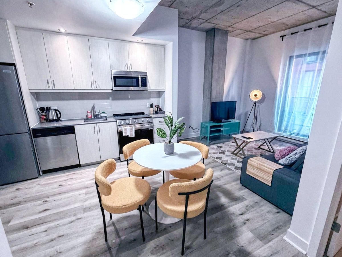Benvenuti nel tuo studio di Montreal progettato con cura, uno spazio ideale per viaggiatori singoli, coppie o viaggiatori d'affari. Questa unità pulita e moderna offre comfort, comodità e carattere in egual misura. Perfettamente situato vicino all'UQAM e a pochi passi da McGill, sei circondato da affascinanti caffè, diversi ristoranti e un rapido accesso alla metropolitana. Ogni elemento è stato accuratamente selezionato per creare un soggiorno elegante ma rilassato.