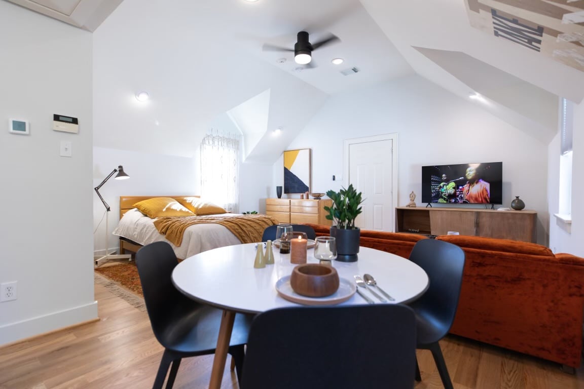 Questo appartamento con garage recentemente ristrutturato e ultra-chic si trova in posizione centrale in uno dei quartieri più emergenti di Houston, Montrose/Mid-town, che vanta una vasta gamma di caffè, ristoranti, negozi e bar tutti raggiungibili a piedi! Con un ampio soggiorno con divano letto e grande smart TV, una cucina a pianta aperta con posti a sedere al bar e tavolo da bistrot, una bella camera da letto grande separata con materasso king-size di lusso/lenzuola e un elegante bagno privato.