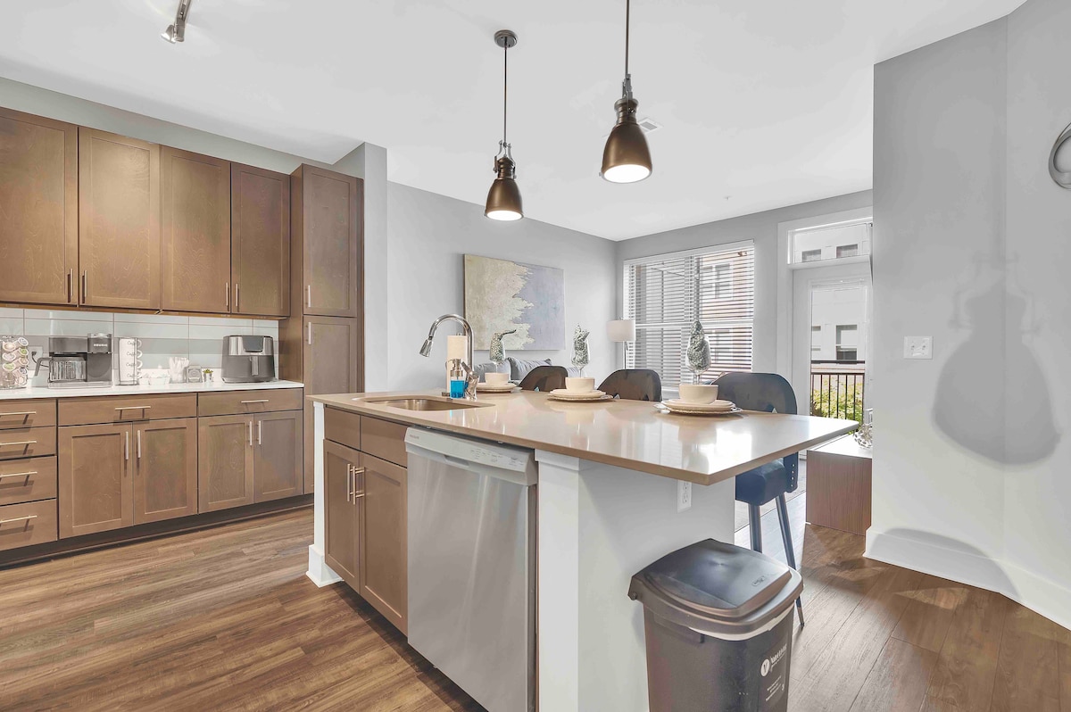 Rilassati nel nostro appartamento moderno e arredato a nuovo, situato nel cuore di Charlotte. Questo spazio accogliente e luminoso è perfetto per coppie, famiglie e gruppi di amici che cercano un rifugio caldo e accogliente. Posizione perfetta! Balcone privato con vista sulla città. Situato in posizione strategica a soli 3 minuti a piedi dal cuore di Charlotte. Sarete a soli 2 isolati dalla stazione della metropolitana leggera di Mint Street e dalla stazione degli autobus Greyhound, a 4 isolati dal BOA Stadium e dallo Spectrum Center.