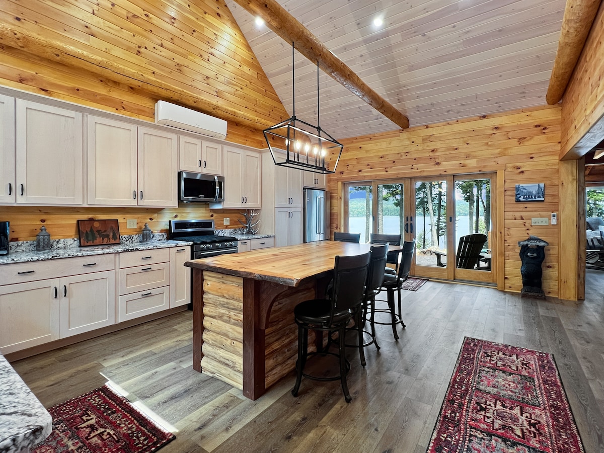 Privacy e comfort sono garantiti in questo spazioso chalet per tutte le stagioni, che offre 3 camere da letto, 2 bagni e stagni privati. La baita è dotata di lenzuola, asciugamani, cucina ben attrezzata, aria condizionata, WiFi, veranda schermata, accogliente camino in pietra, tavolo da picnic, braciere, grill e splendidi paesaggi. La tariffa include fino a 2 ospiti, ogni ospite aggiuntivo costa 35,00 USD a notte. Gli animali domestici sono i benvenuti a un costo di 20 USD per animale al giorno (massimo 2) e la legna per il falò è disponibile a 5 USD a pacco.