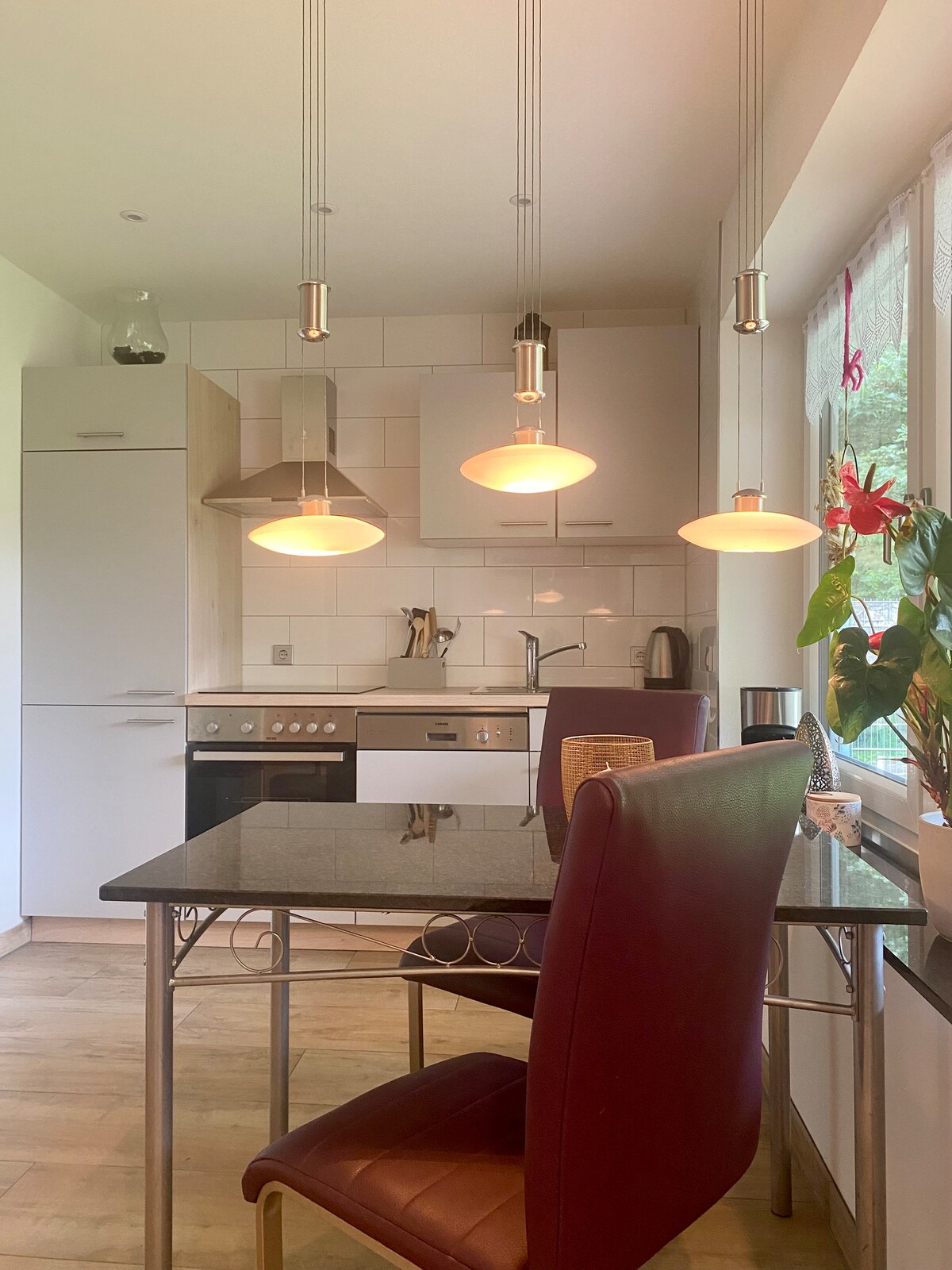 Di fronte alle porte di Schwerin si trova la nostra casa di oltre 100 anni con annesso nuovo edificio con due appartamenti vacanze progettati individualmente. Il "Gardenview" è adatto sia per chi viaggia per lavoro che per chi viaggia da solo. Si trova al 1° piano e offre un soggiorno inondato di luce con letto king size, scrivania e piccola zona pranzo con sgabelli. Una cucina adiacente e un bagno con doccia separato completano l'appartamento con vista sul giardino.