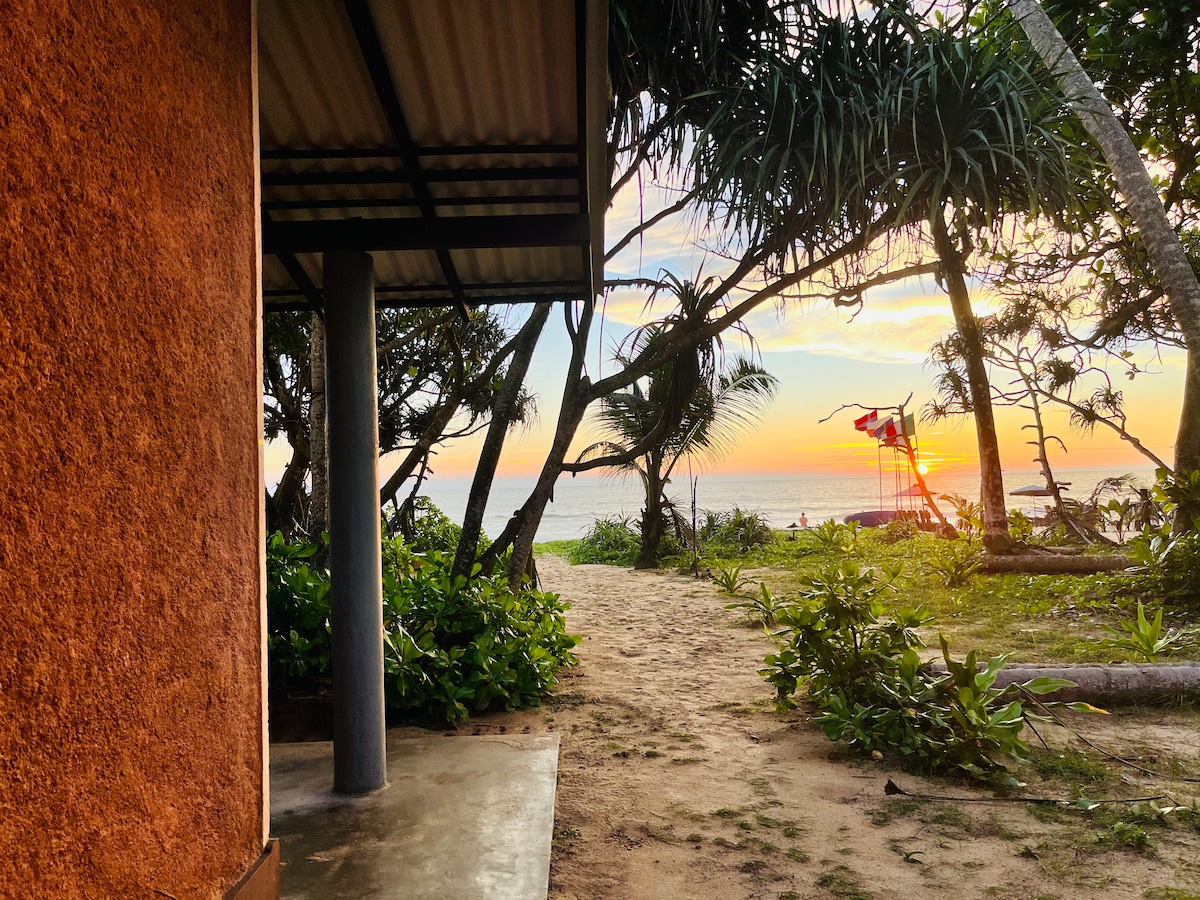 Our private beach house in Hikkaduwa, offers stunning sunset views over the Indian Ocean. 🌅 Enjoy the spacious terrace, direct beach access, and beginner-friendly surf opportunities. 🏄♂️ The house includes a fully equipped kitchen, modern bathroom, air conditioning, and high-speed internet for remote work. 💻 With high ceilings and local fruit & vegetables stores nearby, it combines coastal tranquility with modern amenities for both relaxation and productivity. 🧘♀️