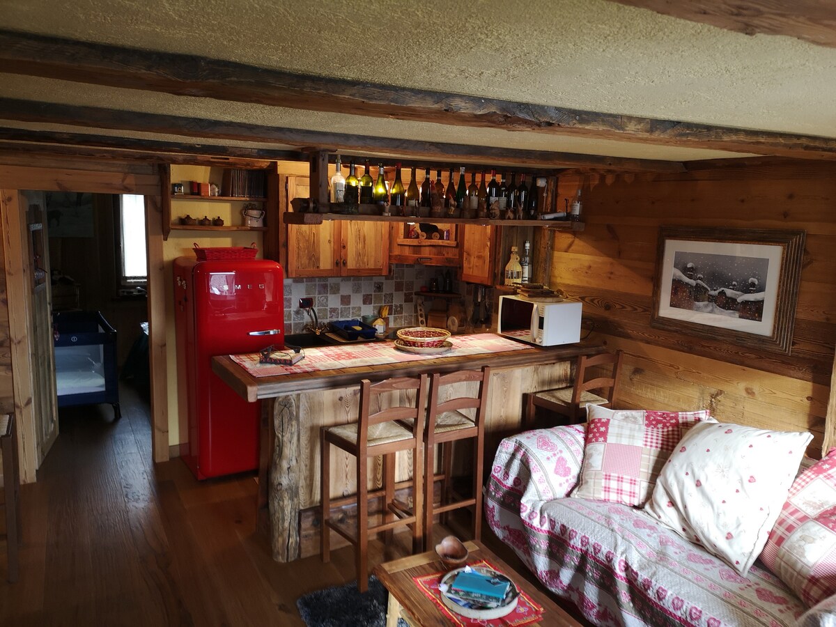 Monolocale di charme a Courmayeur-Dolonne per 3 persone. Esposto lato sud, molto luminoso. Dotato di coperte per i 3 letti. Cucina con lavatrice, piano cottura, frigorifero. Divano letto molto confortevole. TV e WiFi. Bagno nuovo rifatto nel 2025. Alla base delle Piste da Sci. Balcone e Box. Per Courmayeur: bus navetta davanti a casa o 10 min a piedi. Parcheggio privato coperto a 30 metri dalla casa. L'appartamento è in Str. Vittoria, 6, Dolonne, Courmayeur. Pets: extra 50 eur per sanificazione