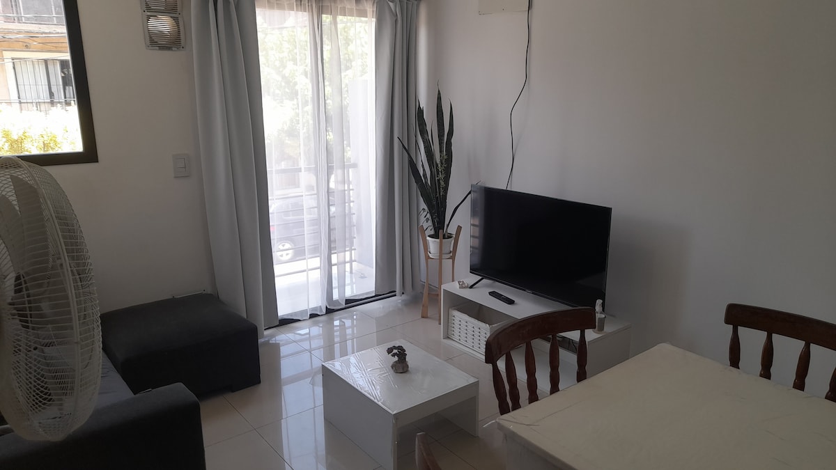 Appartamento per due persone, con possibilità di letto separato, molto comodo, silenzioso, senza scale, wifi, riscaldamento, ventilatore, Internet TV. Siamo strategicamente situati a soli 10 minuti dall'aeroporto DEL PALOMAR, a 25 minuti dall'aeroporto EZEIZA, mezzi pubblici a 100 metri, MORON AEROPORTO 5 minuti e 40 minuti da CABA. Dispone di una cucina attrezzata per rendere più confortevole il vostro soggiorno, una camera con letto matrimoniale, un cortile con lavanderia
