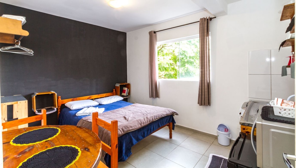 Rilassati in questo spazio tranquillo ed elegante. Soggiorna in un alloggio comodo, pratico e accogliente! Il nostro monolocale completo si trova a 18 minuti dall'aeroporto internazionale Afonso Pena. E offre tutto il necessario per un soggiorno tranquillo. Perfetto per collegamenti, viaggi veloci o lavoro. Decorazioni di benvenuto, illuminazione automatizzata e self check-in per la tua completa autonomia.