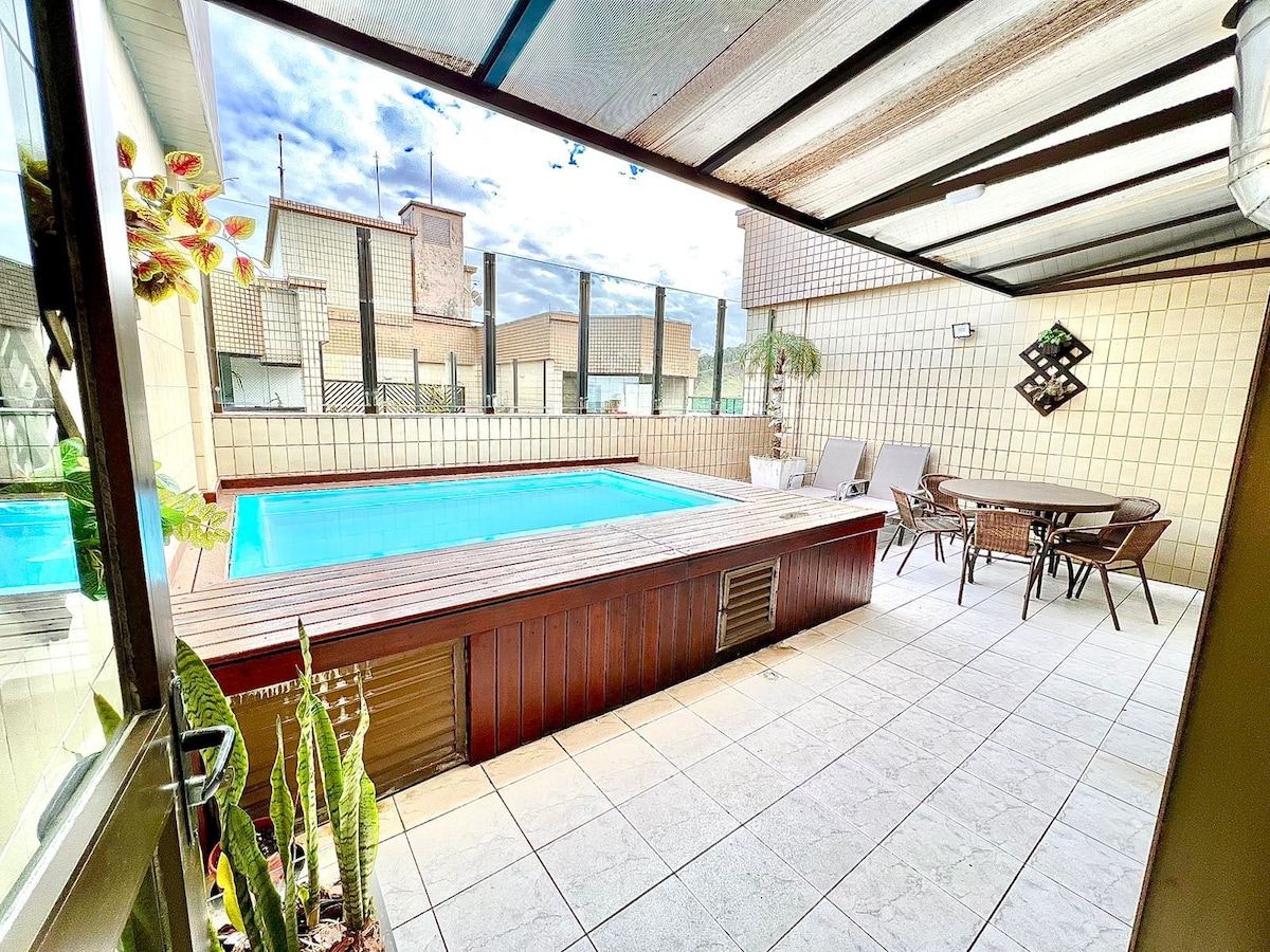 Soggiorna in questo bellissimo attico, edificio fronte oceano con un sacco di spazio per divertirsi. Piscina privata integrata con lo spazio gourmet per godere di momenti indimenticabili con la tua famiglia. Ci sono due bagni in camera e due camere da letto. Soggiorno e sala da pranzo integrati con il balcone, la piscina e lo spazio gourmet. Può ospitare fino a 10 persone. Gli animali domestici di piccola taglia sono i benvenuti. 2 posti auto, Wi-Fi e aria condizionata. Condominio di lusso sulla spiaggia, posizione privilegiata nel centro di Mongaguá.