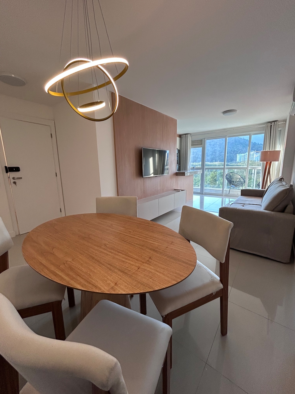 Sala com varanda , cozinha e área integrada e uma linda suíte, confortável e próxima ao Rio Centro, novinho e pronto. No condomínio temos academia, restaurante com café, almoço e jantar e um mini mercado. No hall de entrada do apt existe uma câmera de segurança monitorando a entdo apt. Distancias pontos do RJ Rio centro - 1km, Jeuness Arena - 4km, Praia Recreio 4km - Praia Barra - 10km, Engenhao - 10km, Maracanã 15km, Pao de acucar - 30km e Cristo 20km Aerop Tom Jobim ou Santos Dumont 35km