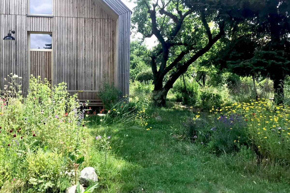 Rilassati in questo alloggio speciale e tranquillo, il pittoresco villaggio di Ihlow, nello Schweiz Märkische (5 km a piedi attraverso la foresta fino a Buckow), a 55 km a est di Berlino. Puoi nuotare nel lago Reichenower (3 km) o nel Grosser Thornowsee. Se non hai un'auto, puoi arrivarci in autobus o in bicicletta (18 km) dalla stazione di Straussberg Nord. La casa è stata completata nel 2022 (sviluppato da 3 architetti dell'Accademia d'arte di Berlino 3 camere, 2 bagni, grande tavolo da pranzo, camino, sauna finlandese, terrazzo soleggiato
