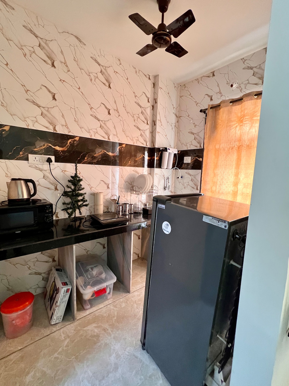 Ti diamo il benvenuto in una casa tranquilla e confortevole a Karjat, circondata dal verde e da un ambiente tranquillo. Questo accogliente appartamento con una camera da letto in una tranquilla società residenziale è ideale per coppie e brevi vacanze vicino a Mumbai. Lo spazio comprende 2 bagni, una cucina completa, Wi-Fi veloce e un ambiente caldo e accogliente. Un'apertura sul giardino fa entrare aria fresca e luce naturale. Situato proprio accanto a DMart per un facile accesso a generi alimentari e articoli di prima necessità. Soggiorno semplice e di buon gusto, ideale per pause rilassanti e per rilassarsi