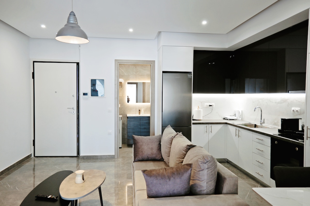 Goditi un soggiorno con un'atmosfera zen in un elegante studio di design nel cuore di Nea Smyrni! Il monolocale è dotato di soggiorno che si trasforma in camera da letto, tavolo da pranzo/ scrivania multifunzionale, zona cucina completamente attrezzata, bagno e balcone privato con vista sul giardino. Da Oh My Host Flats. Fatturabile su richiesta.