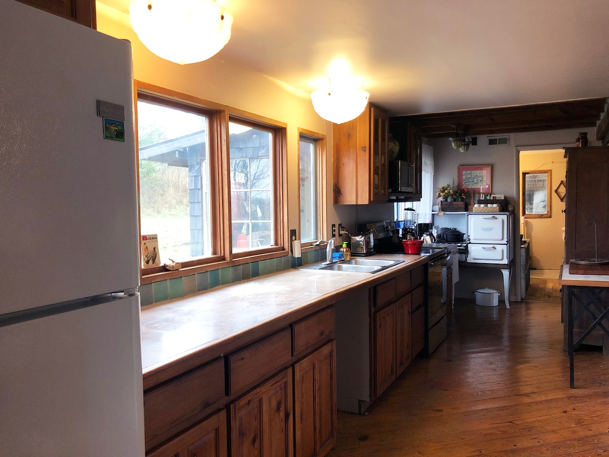 NUOVI LAVORI DI RISTRUTTURAZIONE PER IL 2024! Nuova enorme camera da letto principale con bagno interno!! Totale 2,5 bagni! La fattoria Catawba si trova nel sito effettivo dell'ex città di Catawba. Alla fine del 1800, la città di Catawba ospitava una bottega del fabbro, un grande magazzino, una scuola, una chiesa, una stazione ferroviaria e una pop. ~110. Sentirai la storia mentre esplori la fattoria di 99 acri ammirando lo splendido scenario o ti rilassi nella casa colonica splendidamente ristrutturata.