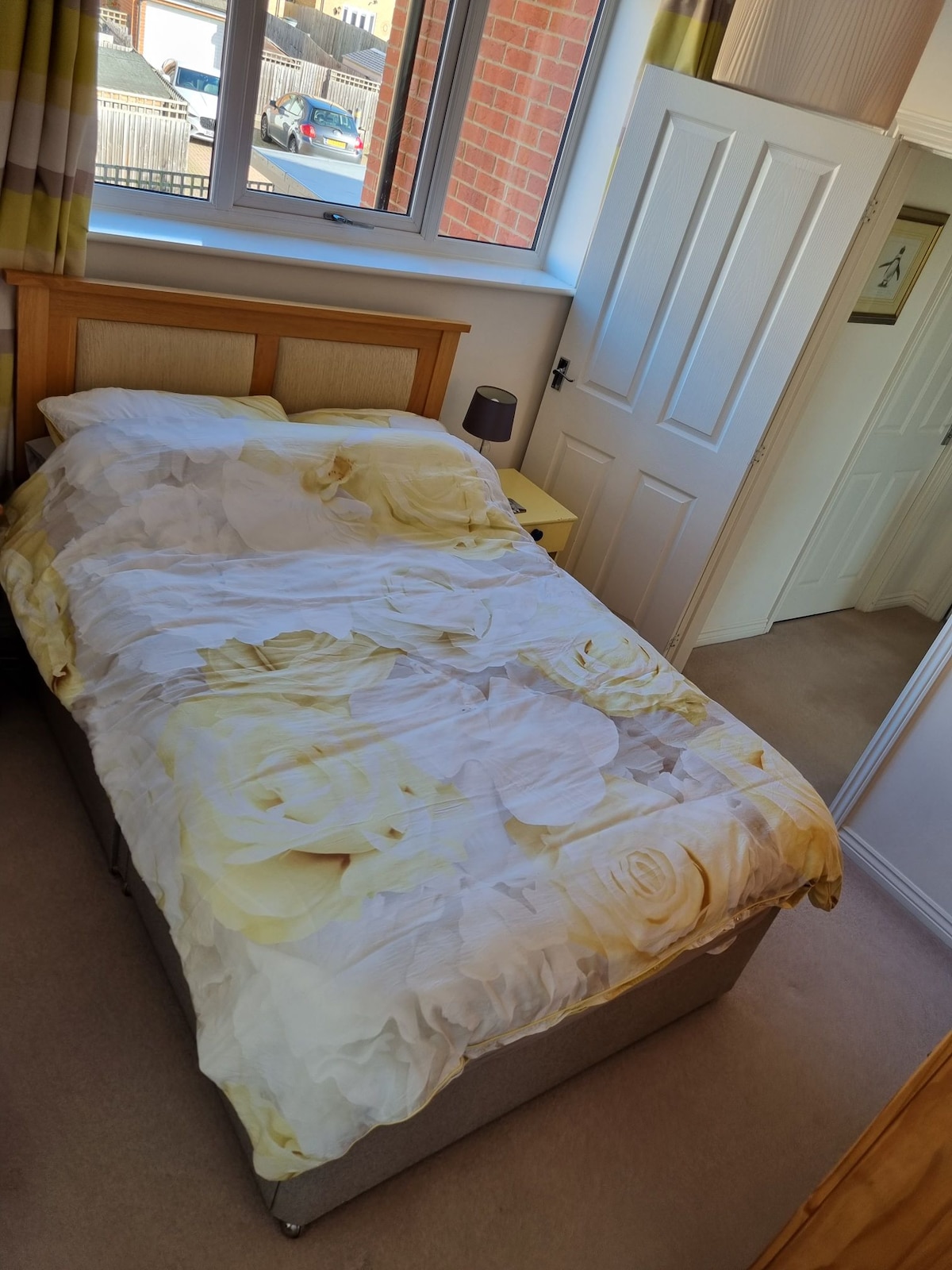 Immaculately presented Self contained garage conversion with own entrance door and en suite walk in shower room. Modern bright and spotlessly clean spacious bedroom The room has ample sockets usb points tv wifi desk and lamp tea and coffee making facilities and a mini cool box/fridge. There is a lockable fire door to the main house which is kept locked. Ideal for business guests close to J14 of the M1 and Willen Lake and handy for Silverstone. Free parking on driveway. Quiet location