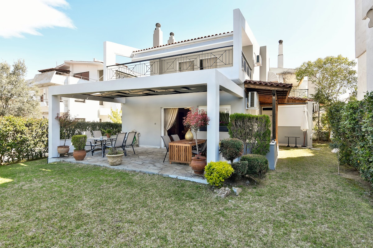 Casa di lusso di 250 mq tre livelli con cortile, bellissimi balconi con vista su Thermaikos. Pianoforte, oggetti d'antiquariato, opere d'arte e innumerevoli libri creano l'atmosfera del soggiorno. Le camere da letto con materassi ortopedici offrono una sistemazione di lusso per gli ospiti (nota: per entrare nella camera da letto 4 si passa attraverso la camera da letto 3). Il residence è vicino all'aeroporto, ai centri commerciali, alla vita notturna e a 15 minuti di auto dal centro città.