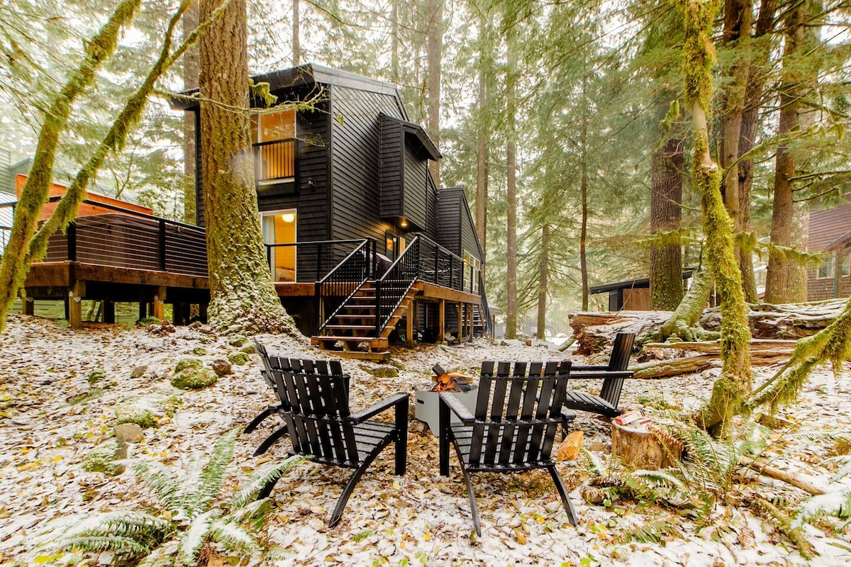 Escape to the Happy Fox Cabin in Rhododendron, Oregon at the base of Mt Hood in PNW! Near Government Camp and only 45 minutes from Portland airport. A fully equipped cabin with high end amenities. Unwind outside to the sounds of a running creek, soak in the hot tub under the stars, or gather around the fire pit. Hike or bike on hundreds of nearby trails, ski at Timberline, Skibowl or Meadows or paddleboard and kayak at Trillium Lake. Plenty of amazing local restaurants and conveniences!