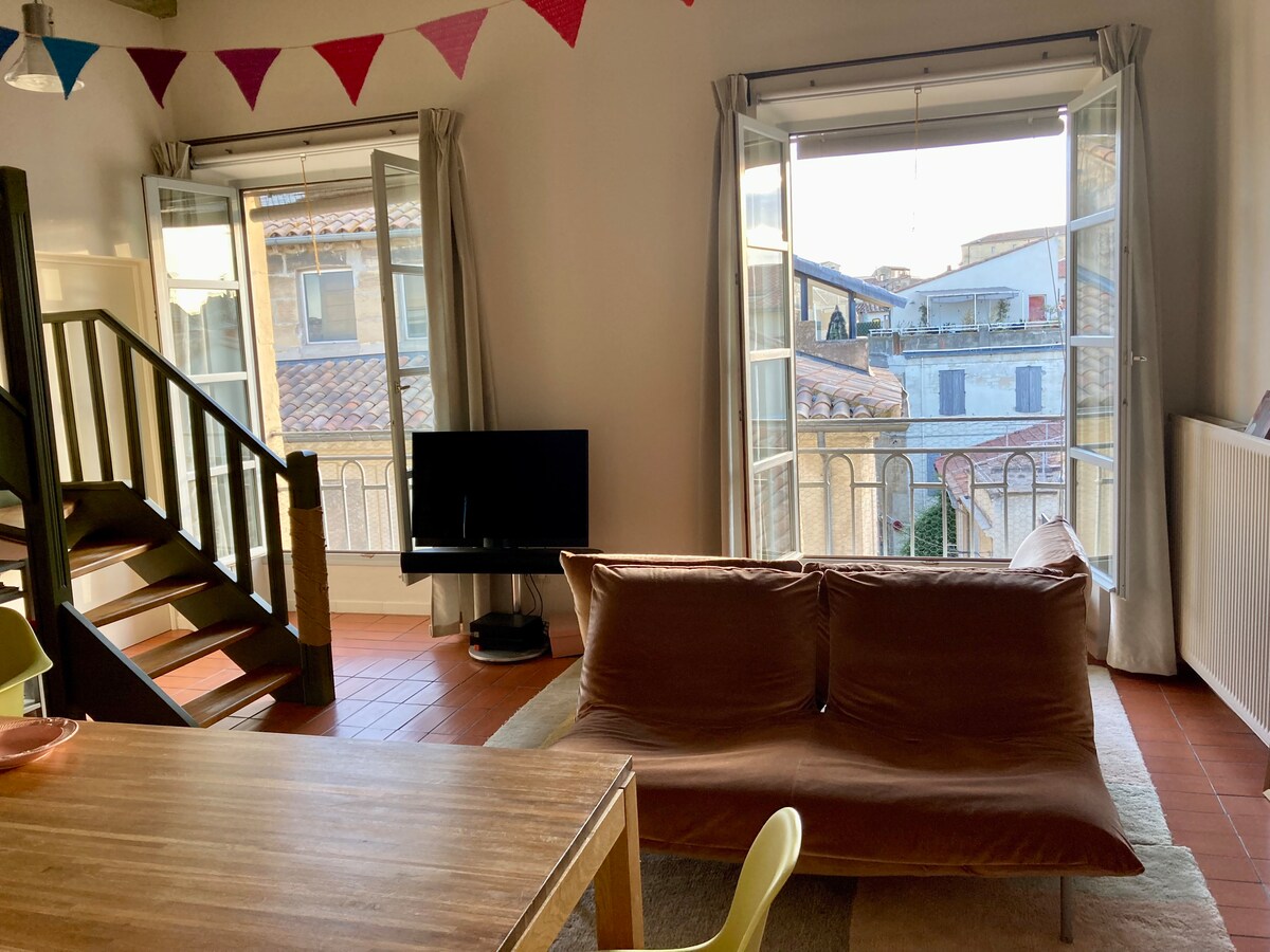 Superbe loft de 50m2 de plain pied refait à neuf dans le respect du secteur sauvegardé .Dans une jolie rue piétonne du quartier de la Roquette,à 2 pas du centre d'Arles et des quais du Rhône ou vous pourrez vous balader,faire votre footing ou promener votre chien. Vous pourrez vous impregner de la vie du quartier et visiter Arles et ses trésors . LOGEMENT CLASSÉ 3 ETOILES PAR"BOUCHES DU RHONE TOURISME" Vos animaux de compagnie sont les bienvenus.