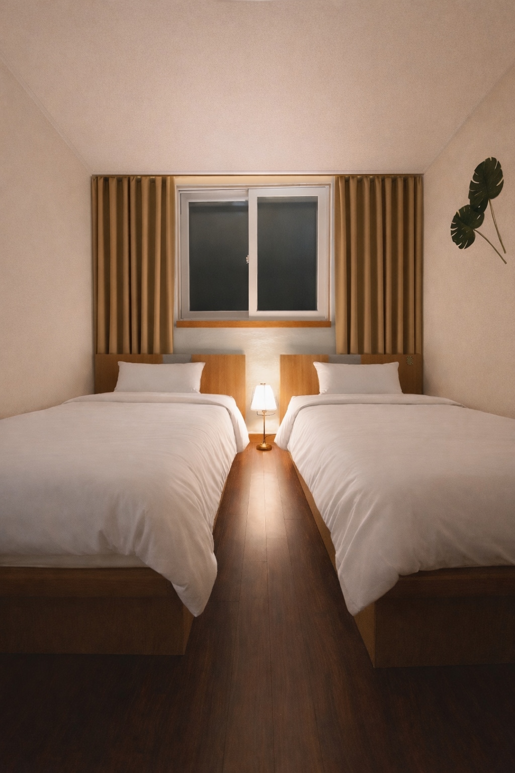 Ciao, siamo Onda, stiamo ricercando e fornendo una varietà di aree relax. Ci auguriamo che tutti coloro che soggiorneranno qui avranno un momento confortevole e felice. [Informazioni sull'alloggio] Ciao. Questa è una pensione situata nel villaggio di Jeonju Hanok. È un luogo dove molti tipi di viaggiatori, come famiglie, amanti, amici, colleghi e viaggi in solitaria, a fine giornata, quindi abbiamo configurato i letti individuali per fornire un posto confortevole per dormire il più possibile. [Tipologia di camera] Stanza privata (2 letti singoli) + 1 WC * La biancheria da letto viene fornita in base al numero di persone prenotate.