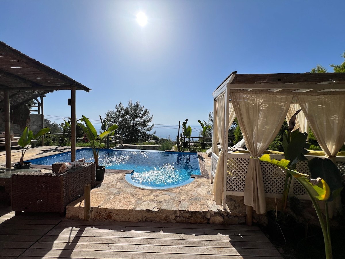 Feli Villa offre un'opportunità privilegiata con la sua struttura costruita con il calore del legno e l'eleganza della pietra e la sua autentica decorazione. Puoi ammirare il magnifico tramonto sorseggiando un drink nella tua piscina con idromassaggio, goderti la vista panoramica sul mare, rilassarti nel padiglione o nel pergolato per immergerti nell'atmosfera locale, preparare i pasti nella cucina completamente attrezzata e abbandonarti alla pace, circondato dalla natura e dalla vista sul mare.