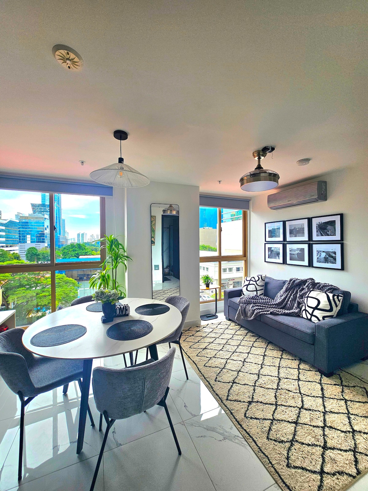 Appartamento moderno ed elegante con una struttura aperta e tutti i comfort. Può ospitare fino a quattro persone con un letto matrimoniale nella camera da letto e un divano letto nella zona giorno. Goditi una cucina completamente attrezzata, WiFi ad alta velocità e aria condizionata. Situato nel cuore della città, a pochi passi dal quartiere bancario e da Via España, e vicino al Soho Mall, al centro commerciale Multiplaza, a ristoranti, caffè, farmacie e alla metropolitana. Perfetto per chi viaggia per lavoro o per piacere in cerca di comodità, comfort e una vera esperienza in città.