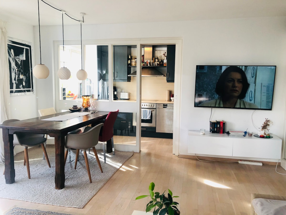 Il nostro appartamento al 5 ° piano (senza ascensore :) è un gioiello a Monaco. Costruito negli anni '90 sul tetto, con legno della foresta bavarese, offre un rifugio dalla trafficata Monaco su 100 metri quadrati. Oltre al bagno e alla spaziosa camera da letto, è composta da un ampio soggiorno con cucina a pianta aperta e giardino d'inverno oltre che da un secondo livello con un letto aggiuntivo. Ci sono tanti dettagli e opere d'arte alle pareti da scoprire.