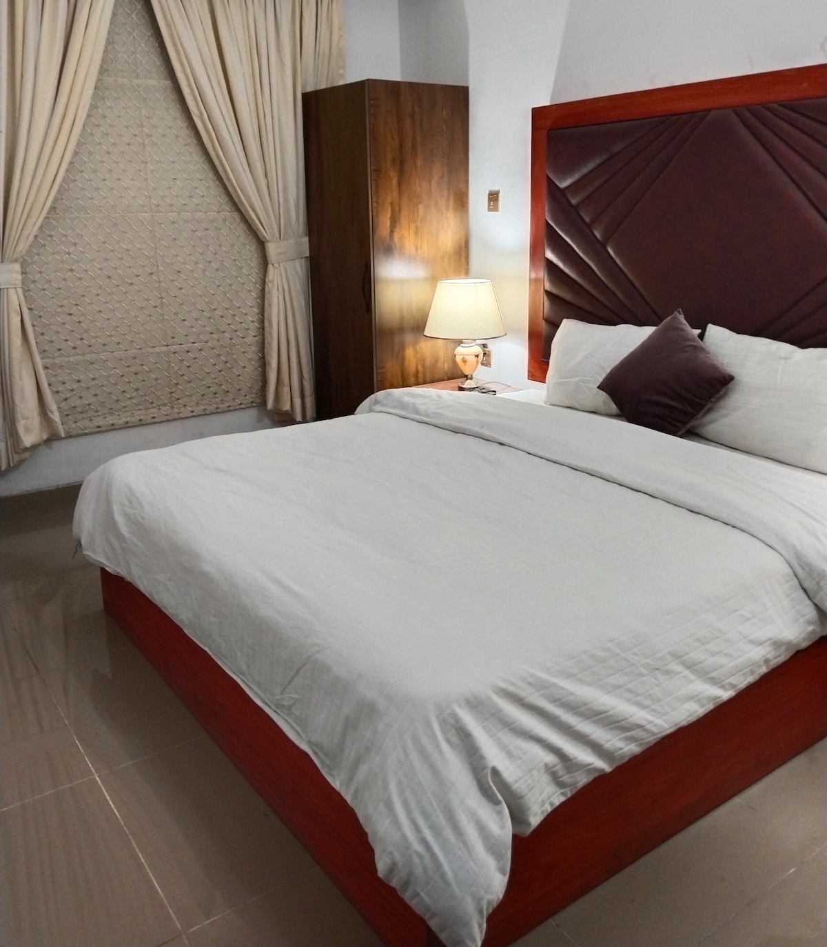 Enjoy a stylish and comfortable private suite designed for relaxation and entertainment. This modern luxury space features a private entrance, elegant interior, and a dedicated cinema-style media setup. The room is thoughtfully designed with premium finishes, cozy bedding, air conditioning, and a large screen with sound system for a true movie-night experience. Ideal for guests who want a secure, separate-access space with hotel-style comfort and home-style warmth.