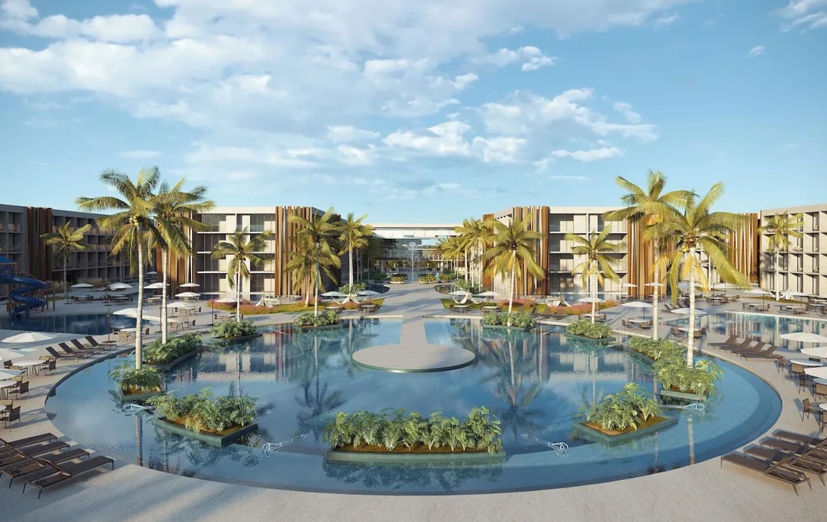 Curta uma experiência luxuosa ao ficar neste lugar especial.quarto com cama de casal e sala com sofá cama pra 2 pessoas,tv e ar condicionado em todos os cômodos,Resort novo e de altíssima qualidade,são várias piscinas para desfrute de sua família,pé na areia com piscinas naturais e passeios incríveis